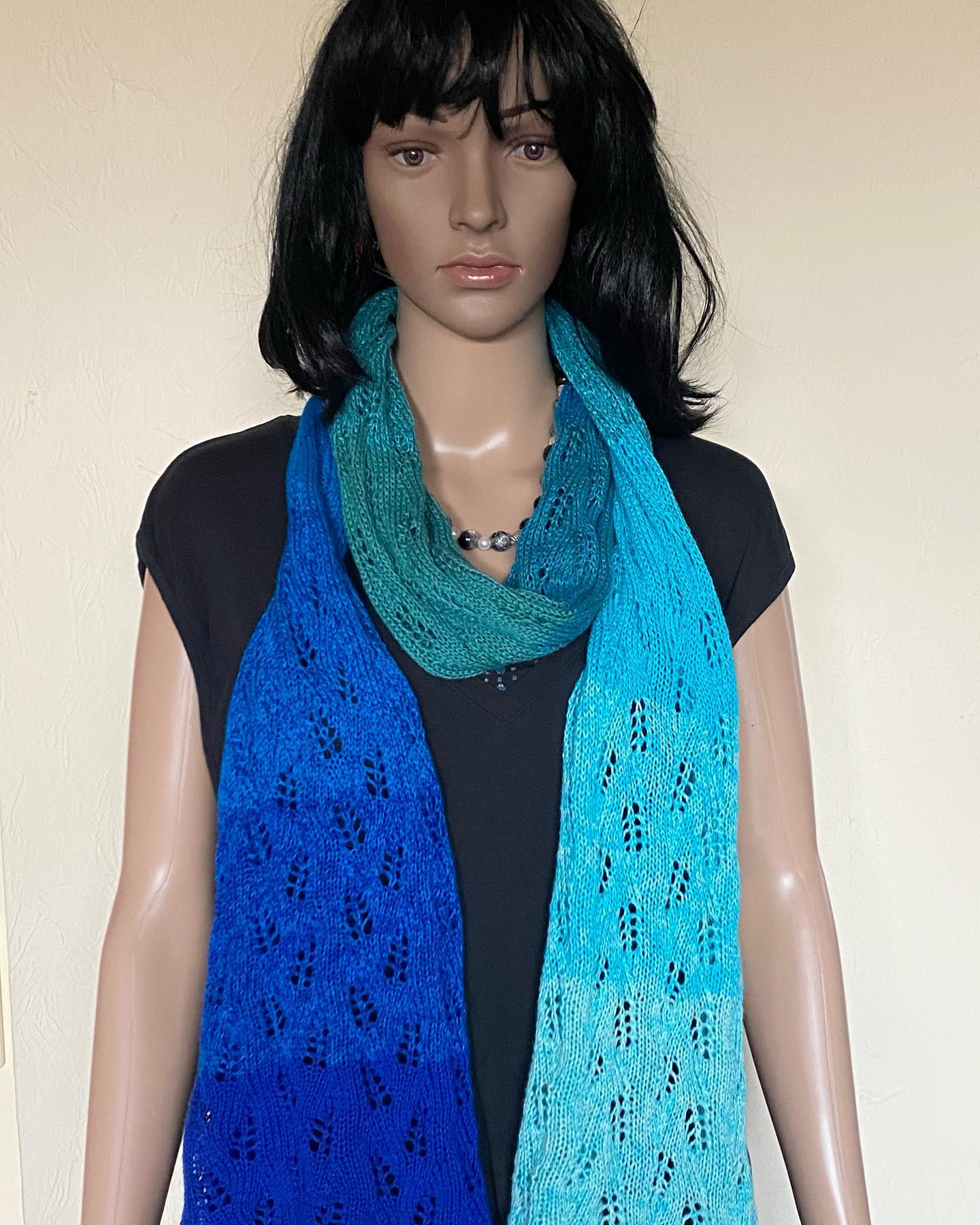 Das Garn, mit dem ich gestrickt habe, hat die Stärke von normaler Sockenwolle. Wer also gerne mit Sockenwolle strickt, auch das ist hier möglich.