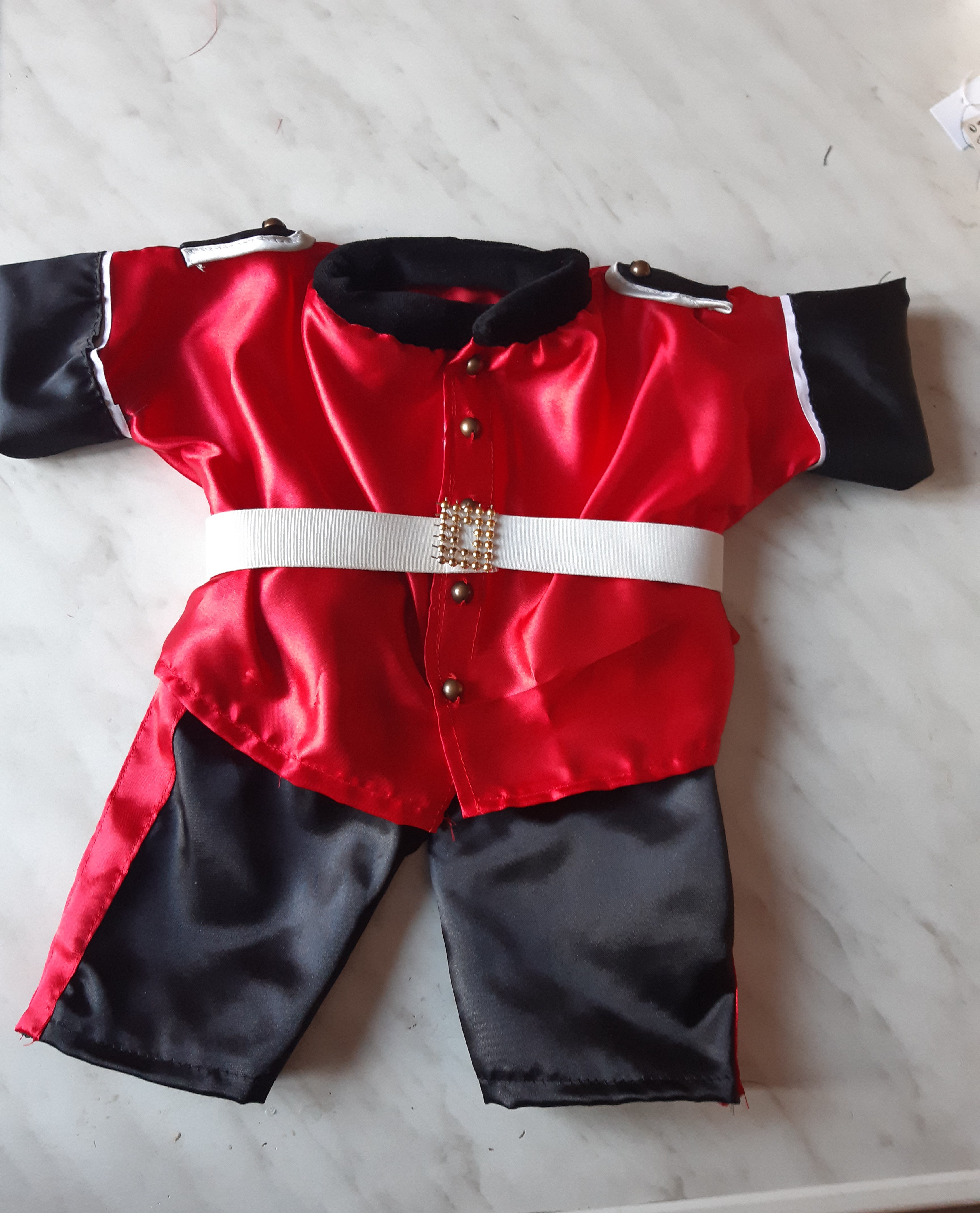 Mein neuestes Werk war ein Auftrag von meinem Enkel.  Angeregt durch das Queen Begräbnis wollte er eine Queen's Guard Uniform für seinen Lieblingsteddy.