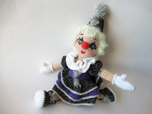 Clownmädchen Carlotta  ist eine kleine Tänzerin, für die das ganze Jahr über Karneval ist. Sie misst etwa 23 cm und trägt ein Kleidchen mit Rüschen und viel Glitzer.
