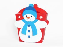 Diese Geschenktasche mit den fröhlichen Schneemännern auf beiden Seiten ist aus Fotokarton gefertigt, ca. 19 x 18 x 10 cm groß und einfach nachzuarbeiten.