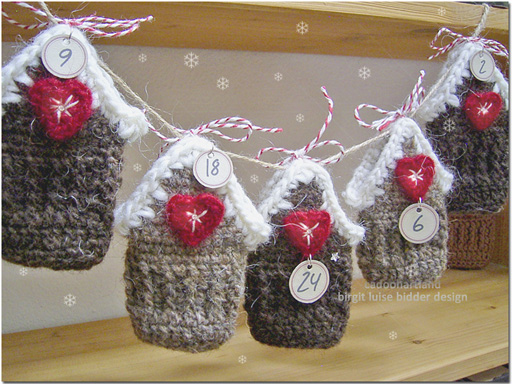 ✭ Aus Schur-/Filz- oder auch aus Baumwolle gehäkelt, sind die Häuschen wunderbare kleine Geschenkebeutel.