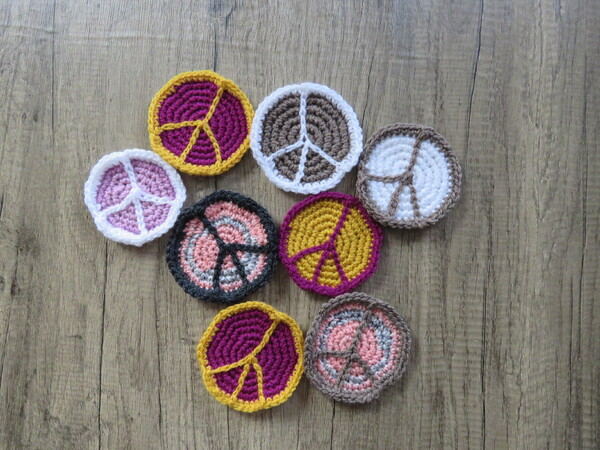 das ist eine gratis Strick-Anleitung mit Peace-Zeichen für einen Waschlappen.