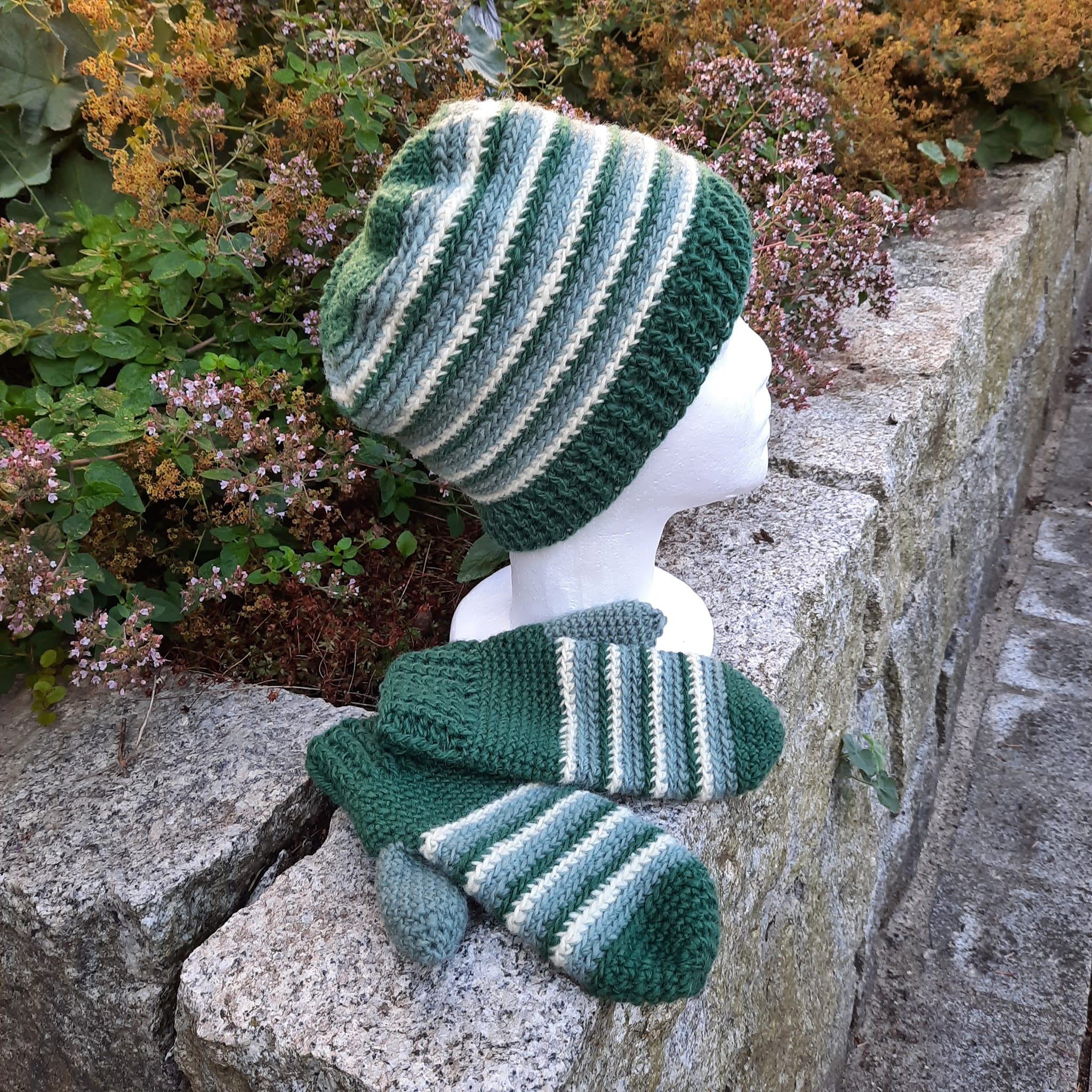 Ganz viele Farbwechsel hast du bei diesem Leseknochen. Deshalb eignet er sich auch prima, um viele bunte Wollreste zu verhäkeln. Die Farbstreifen werden mit schwarzen Reihen eingerahmt, aber auch mit Weiß sieht das sehr dekorativ aus.