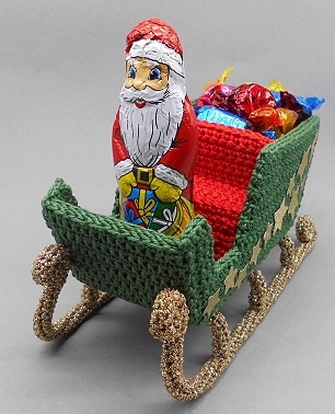 Der Schlitten eignet sich sehr gut als Verpackung für Süßigkeiten oder kleine Geschenke. Der Schlitten lässt sich, auch von Anfängern mit etwas Übung, ganz einfach nachhäkeln und nach Herzenslust dekorieren.