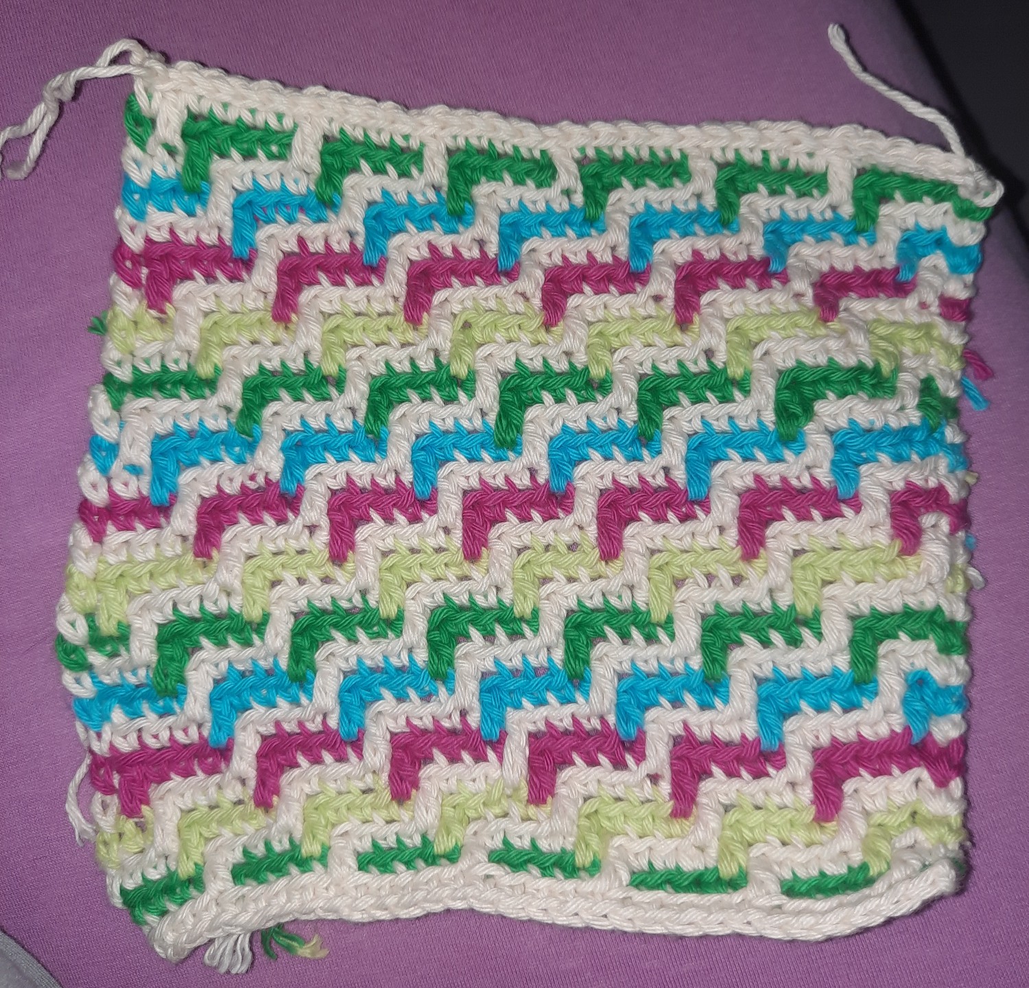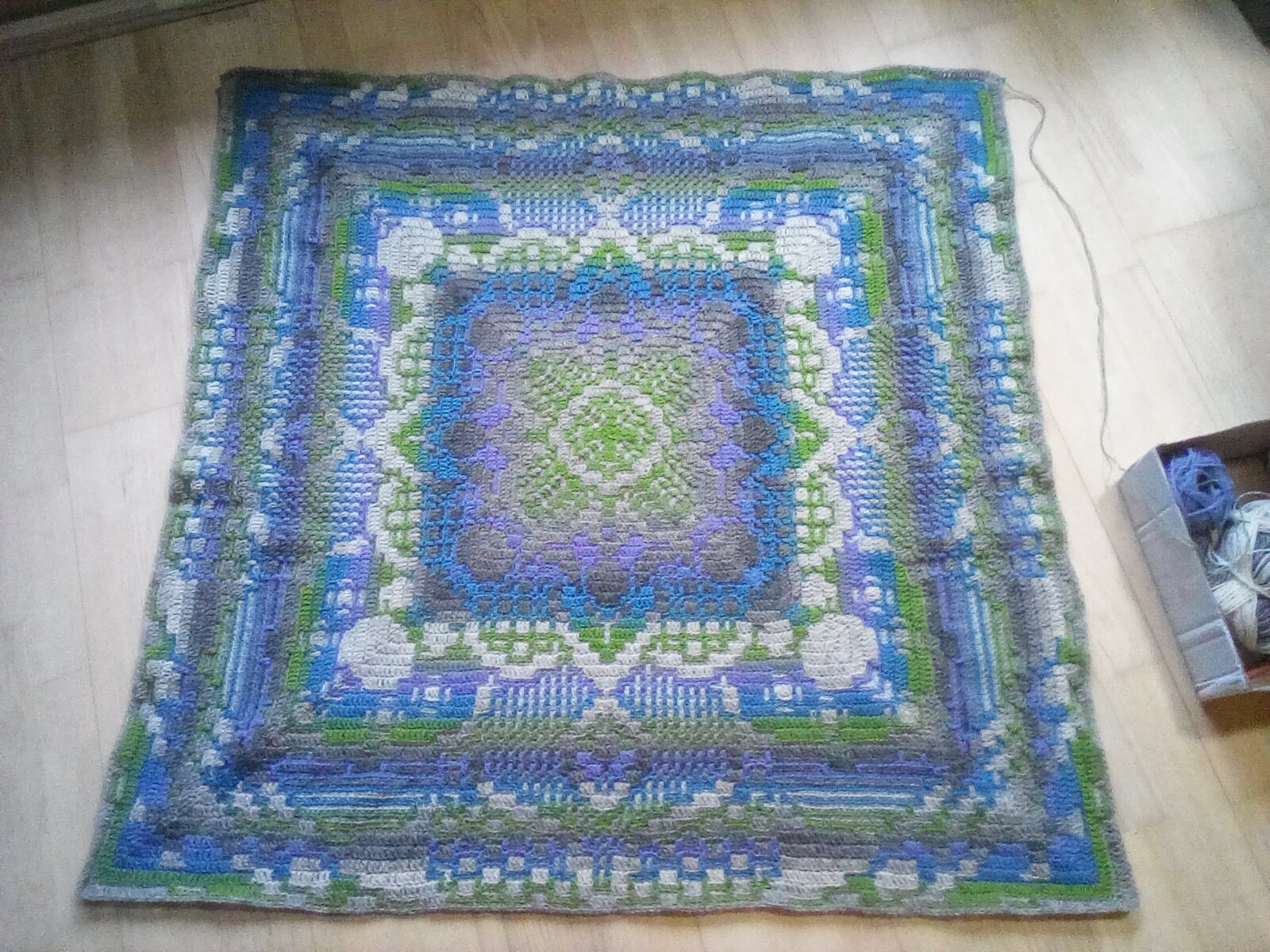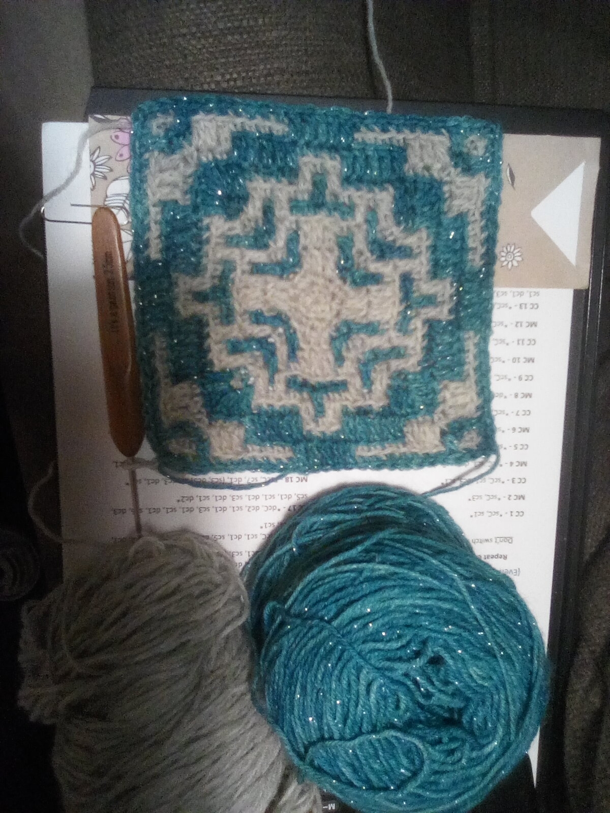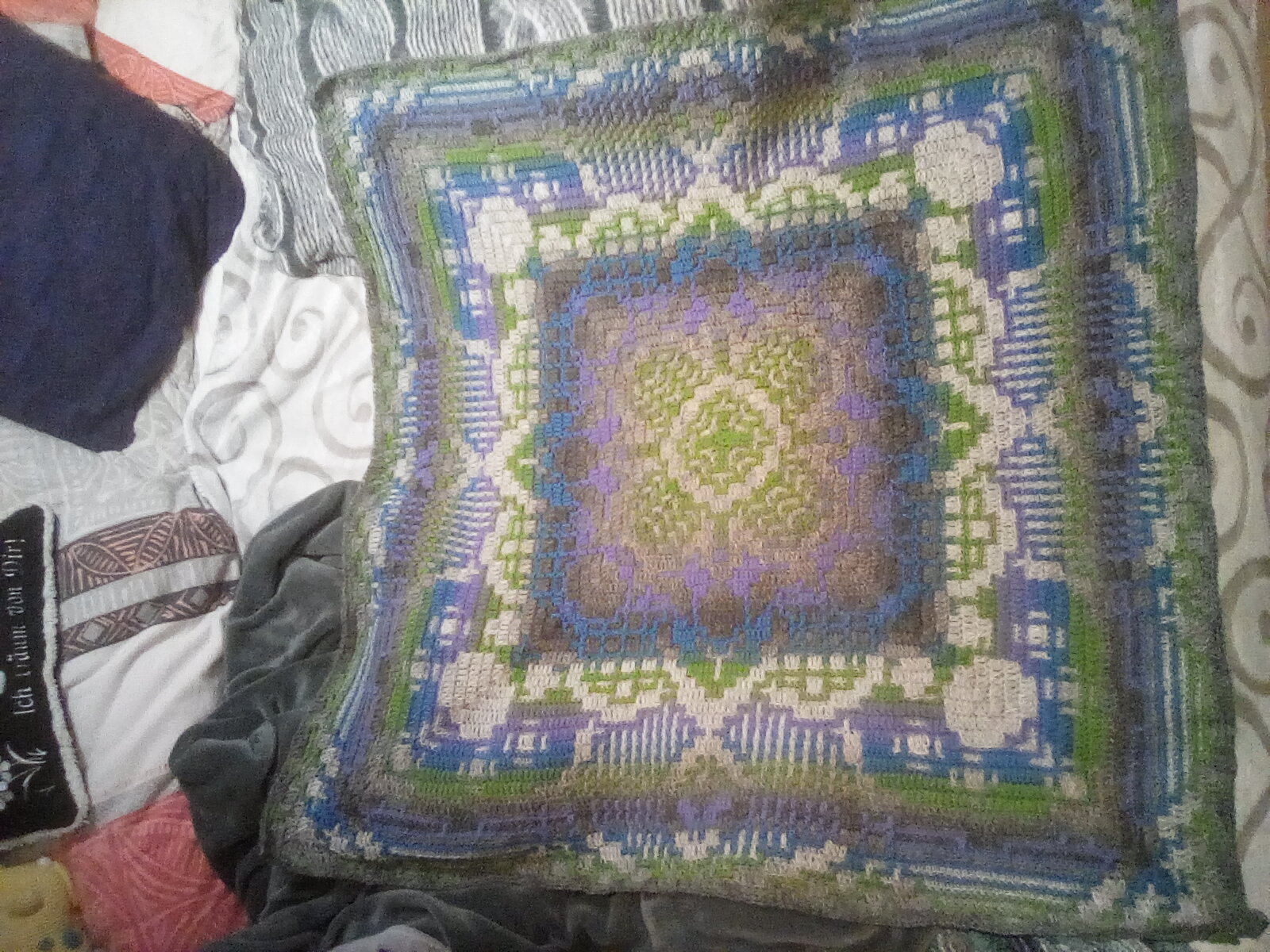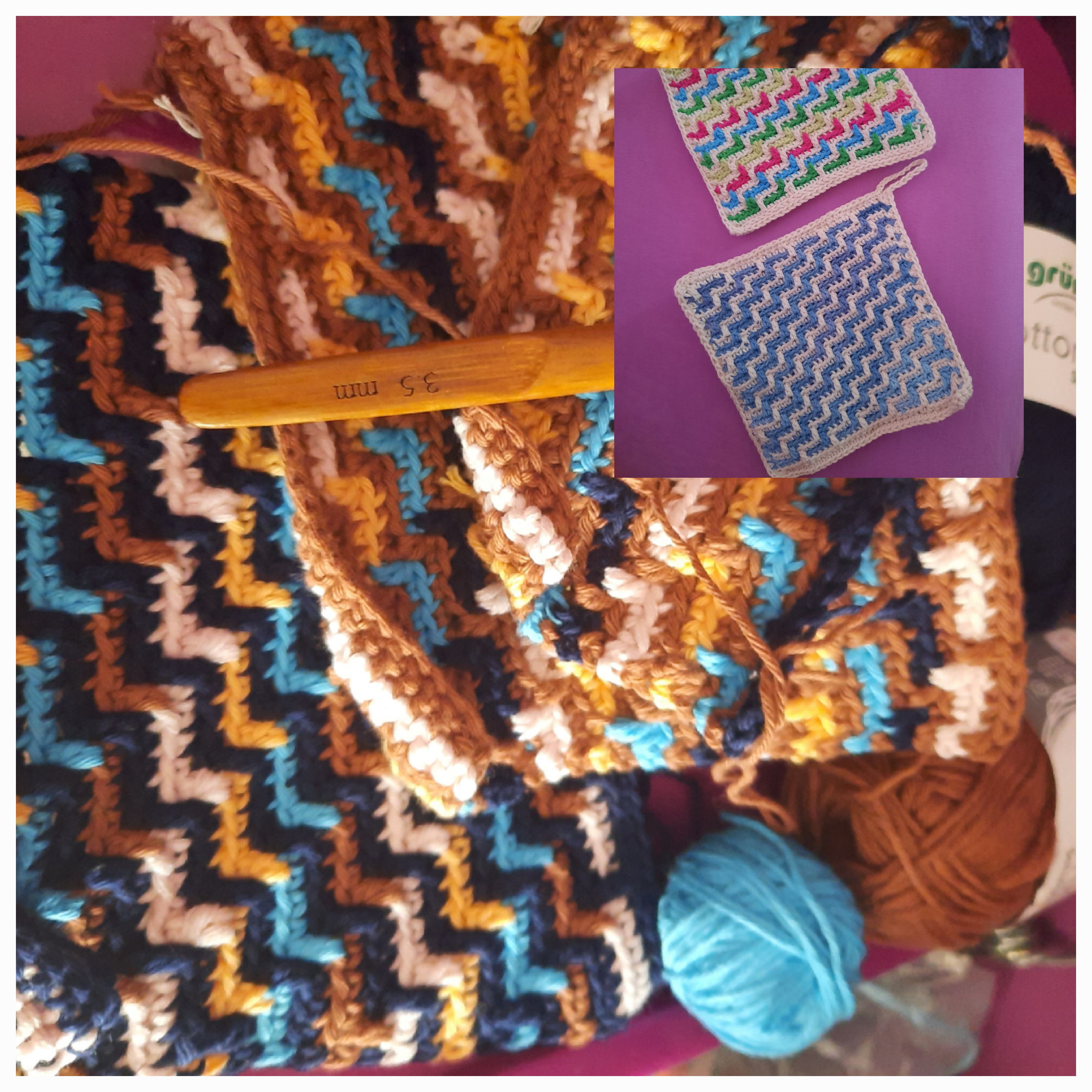 ÿefunden zum Mosaik häkeln probieren. Joah, kann man machen, aber diese Zählerei wäre nix für mich. Hab jetzt ein sich wiedereholendes Muster, aber mehr gezähle bräuchte ich jetzt nicht. Andererseits, wenn die Decke so riesig ist wie bei Steffi, dann kann man das Muster nach drölfzig R ja auch auswenidg, wenn eine R dann so ewig dauert.