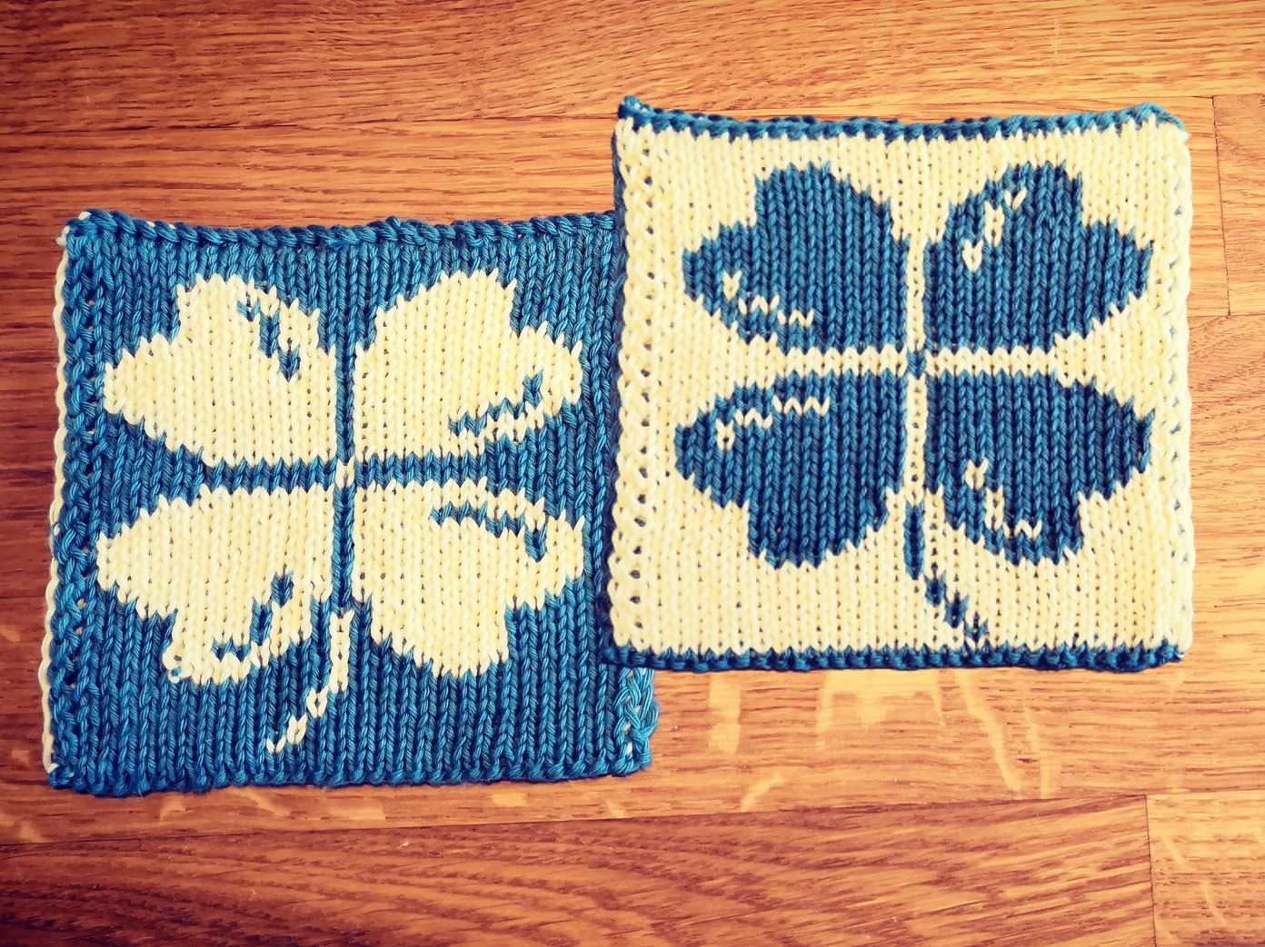 Vielleicht hast Du zwischen den Feiertagen Lust, mal etwas Neues auszuprobieren? Dann bietet sich dieser Untersetzer mit Glückskleeblatt an, gestrickt in Doubleface. Da er recht klein ist, ist das ein ideales Einsteigerprojekt für das Doubleface Stricken. Und bestimmt bringt er Dir gleich Glück für das neues Jahr :-)