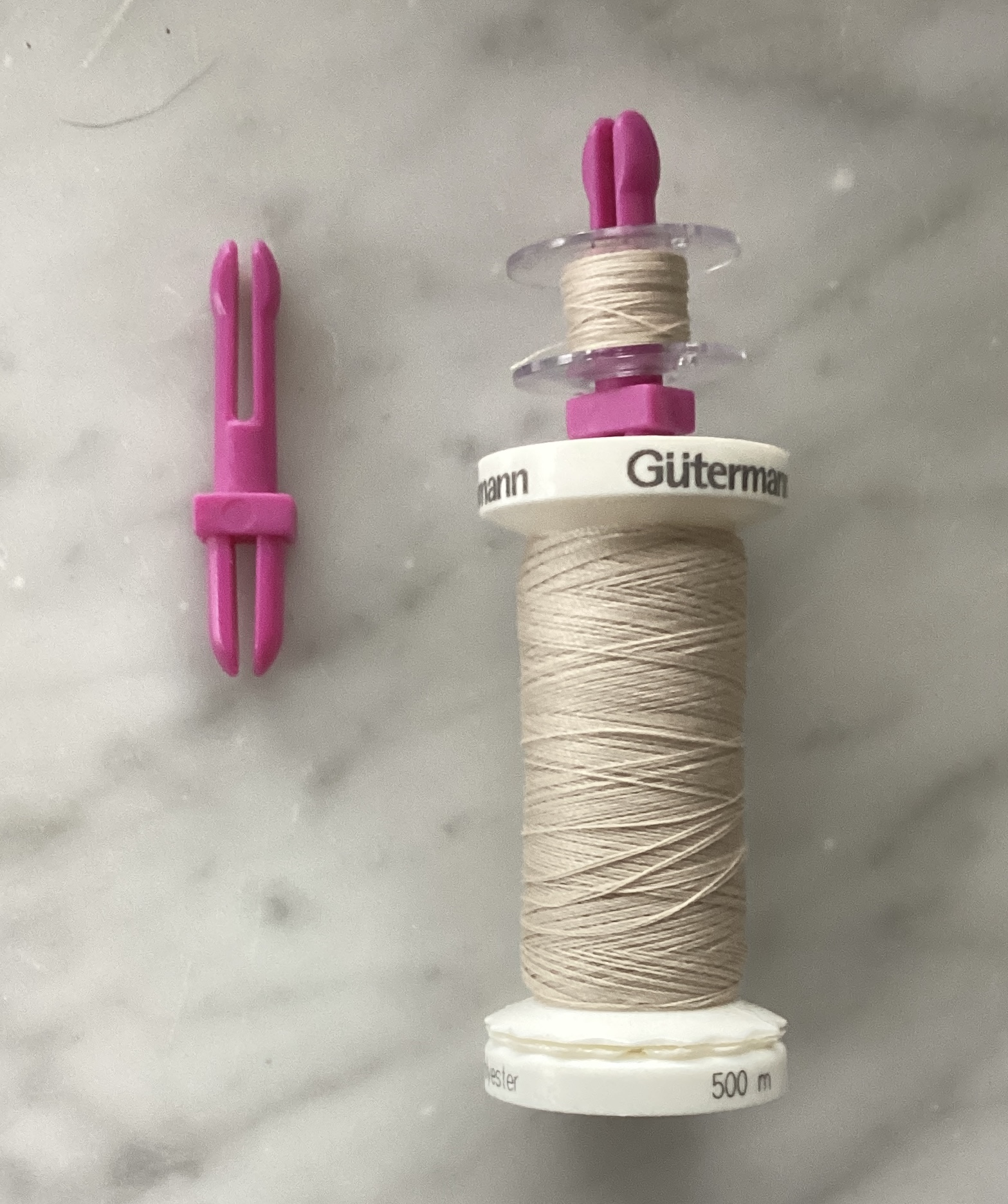 Zusätzliche Garnspulen können mit Stecknadeln fixiert werden.