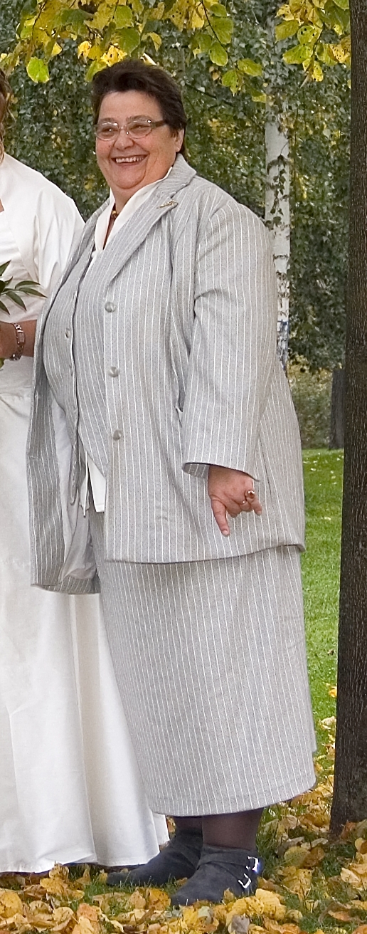 so schau ich aus mit Rock, ich finds fürchterlich, das Kostüm das ich da anhabe hab ich mir zur Hochzeit meiner jüngsten Tochter genäht, ist auch schon wieder ca 14 Jahre her. Das war das letztemal das ich einen Rock getragen habe, seitdem nur noch Hosen. Das Kostüm existiert auch schon lange nimmer.