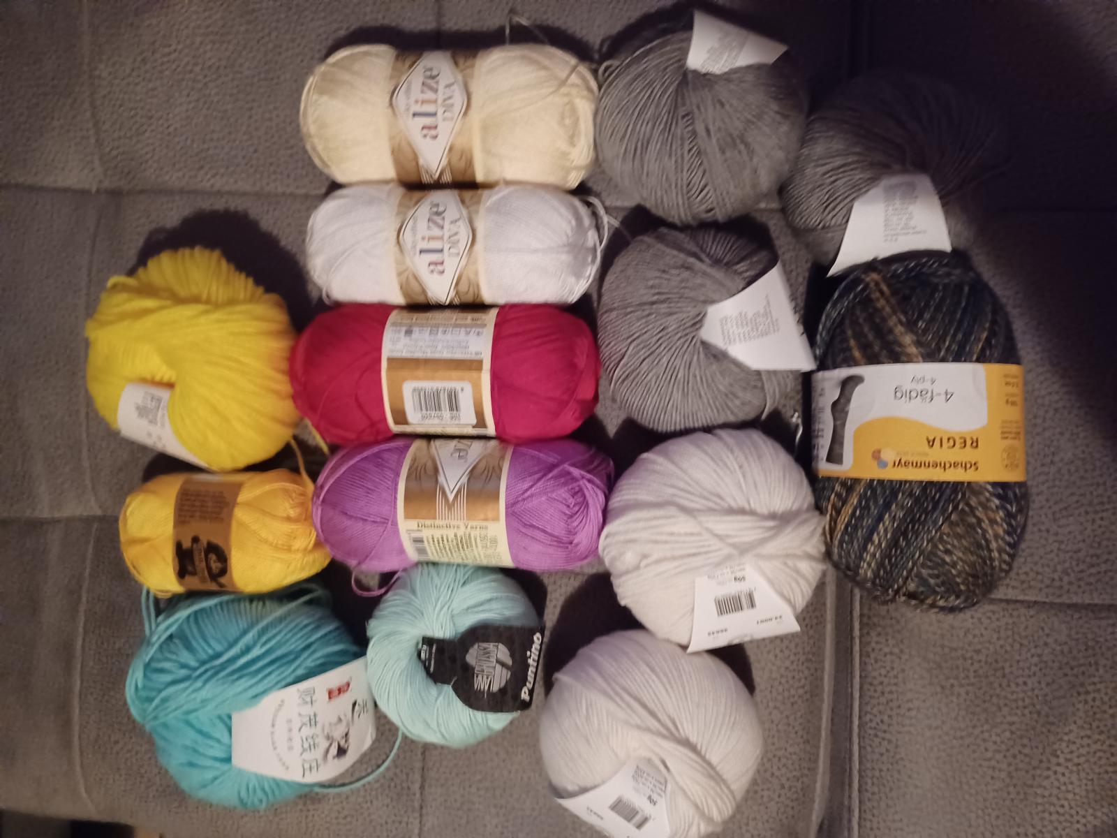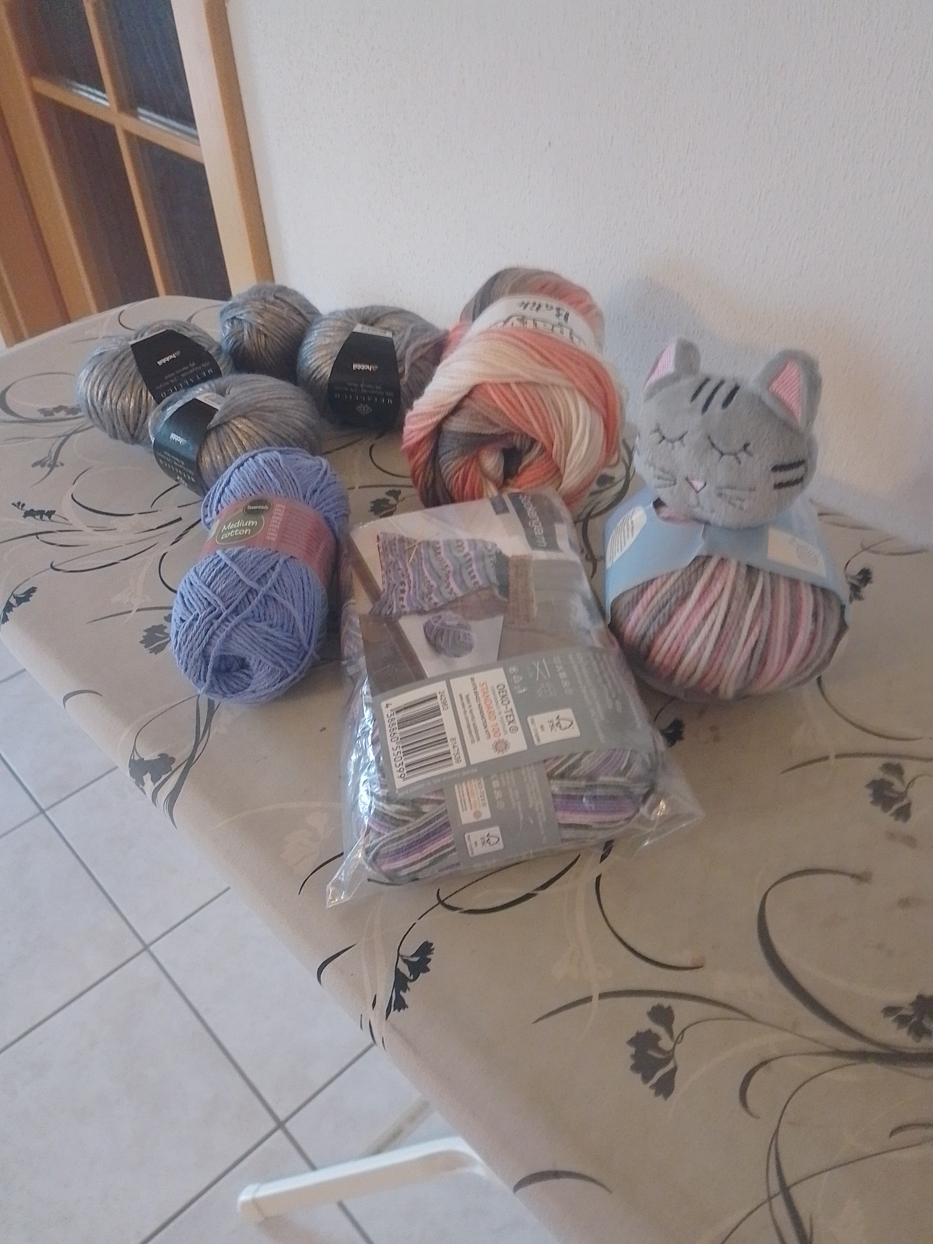 Bevor mein Enkel kam, war ich also schon einige Zeit munter und habe das Paket geöffnet, was soll ich sagen, ich habe wirklich lang überlegt, welche Wolle von den vielen Sorten, die Ina gepackt hat, ich nehmen soll.
