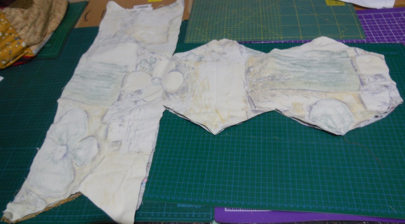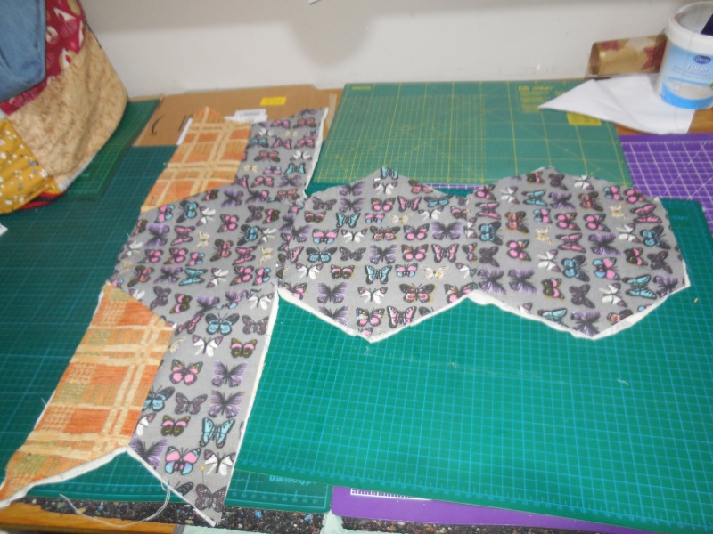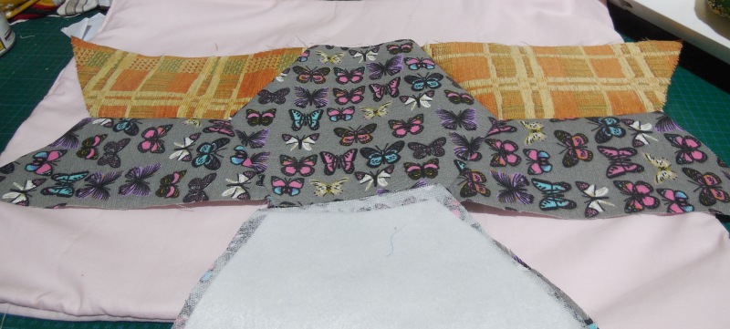 Als erstes Zugeschnitten wird wie im Video, auch die Bügeleinlage, dann habe ich ca Füßchenbreit zusammengenäht