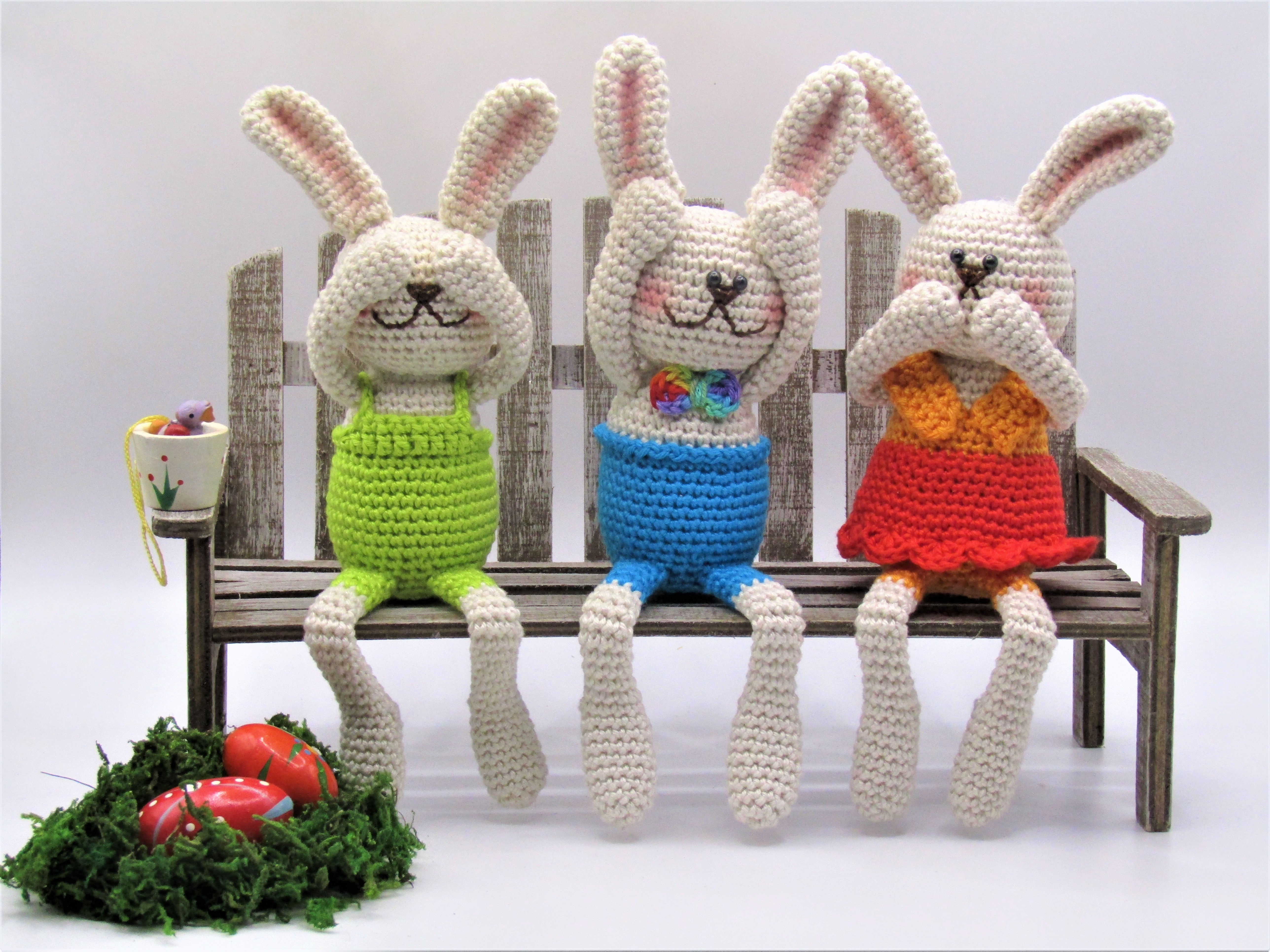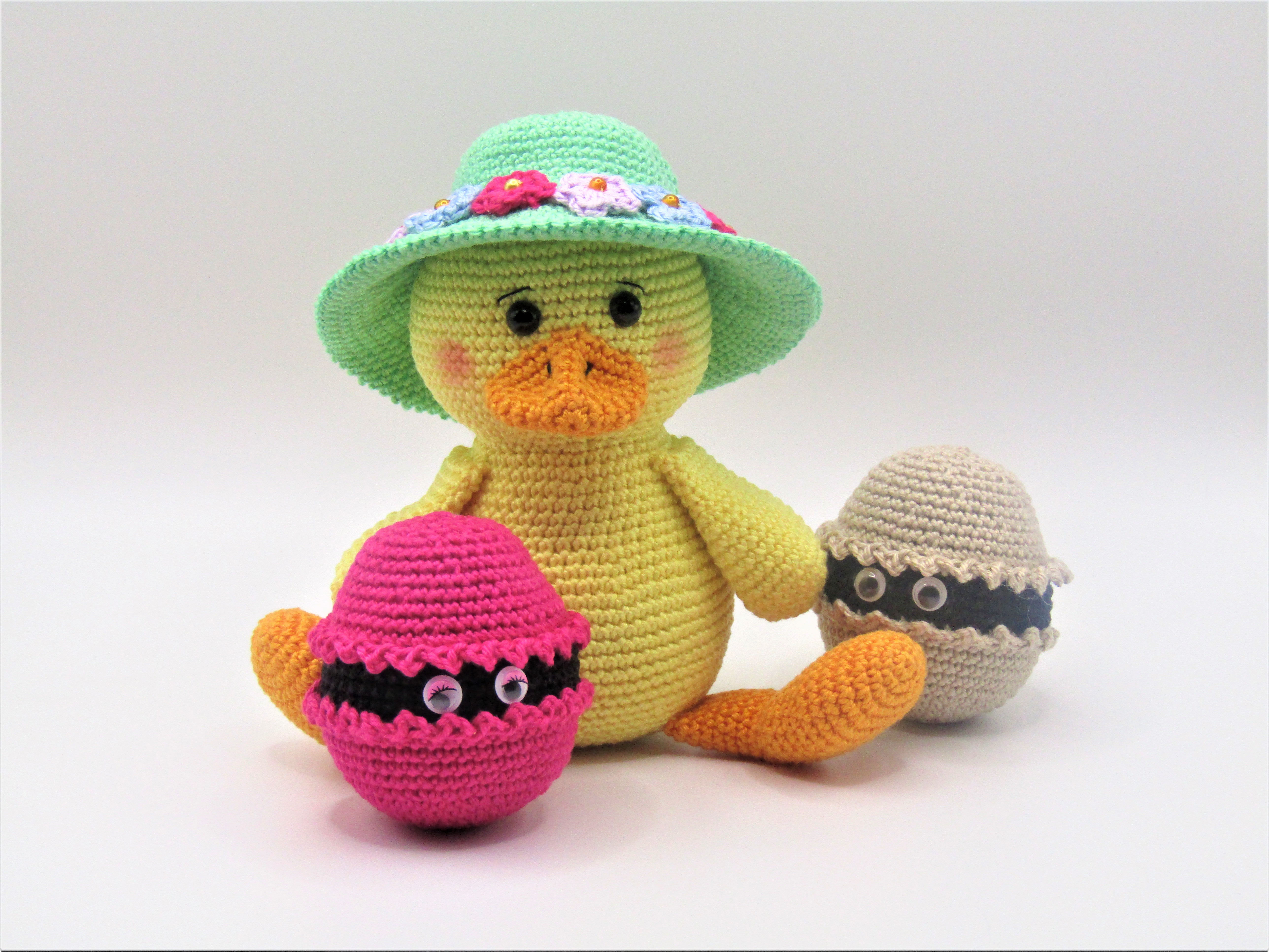 2) Sehr beliebt sind auch die "Sweet Little Chicks" . Sie werden mit der raffinierten Doppelmaschen gehäkelt - dadurch sind sie wunderbar zum Besticken geeignet - so wird jedes Huhn zum Unikat.