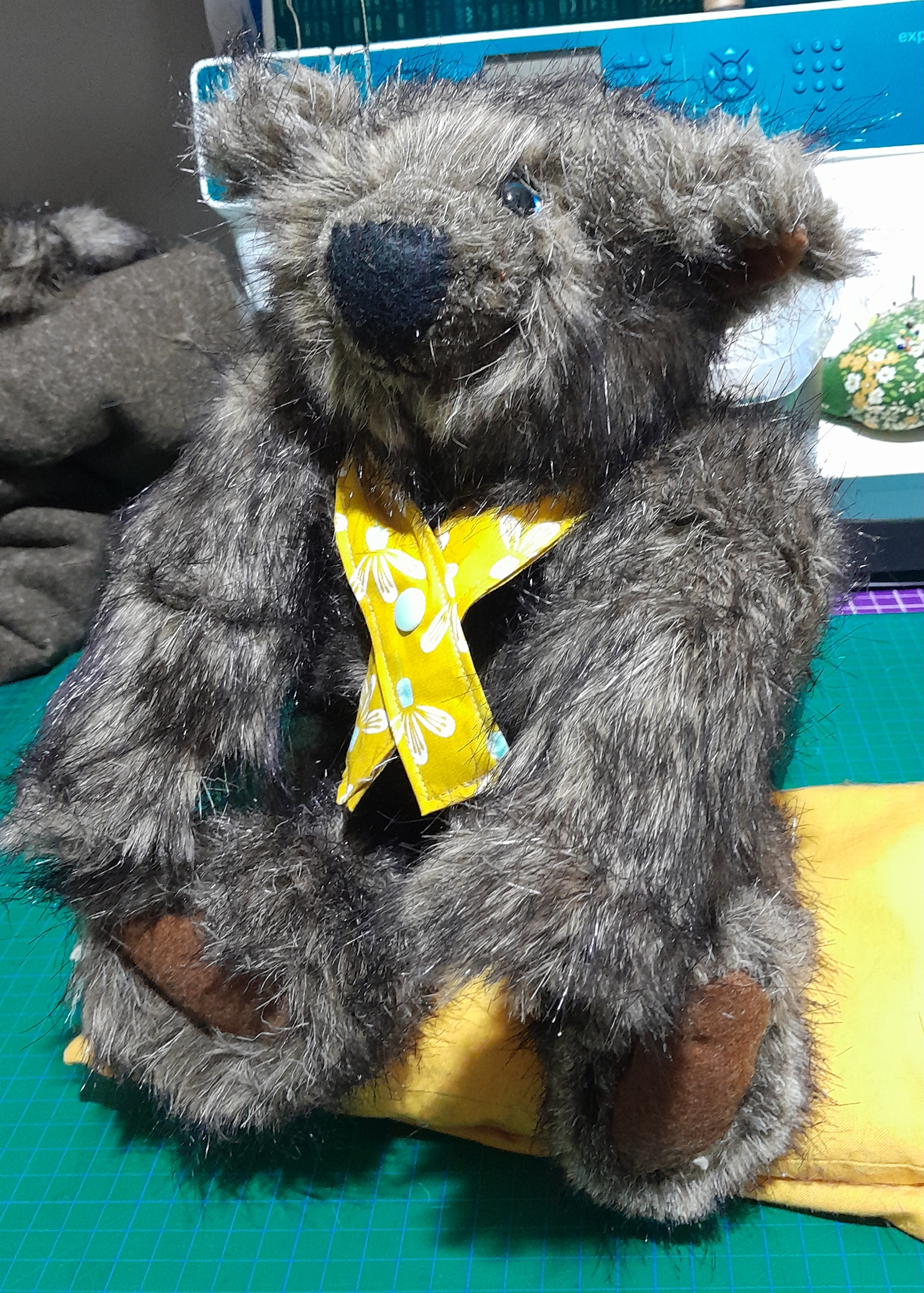 so der Teddy ist genäht, war eine schöne Arbeit und sehr fusselig :-)