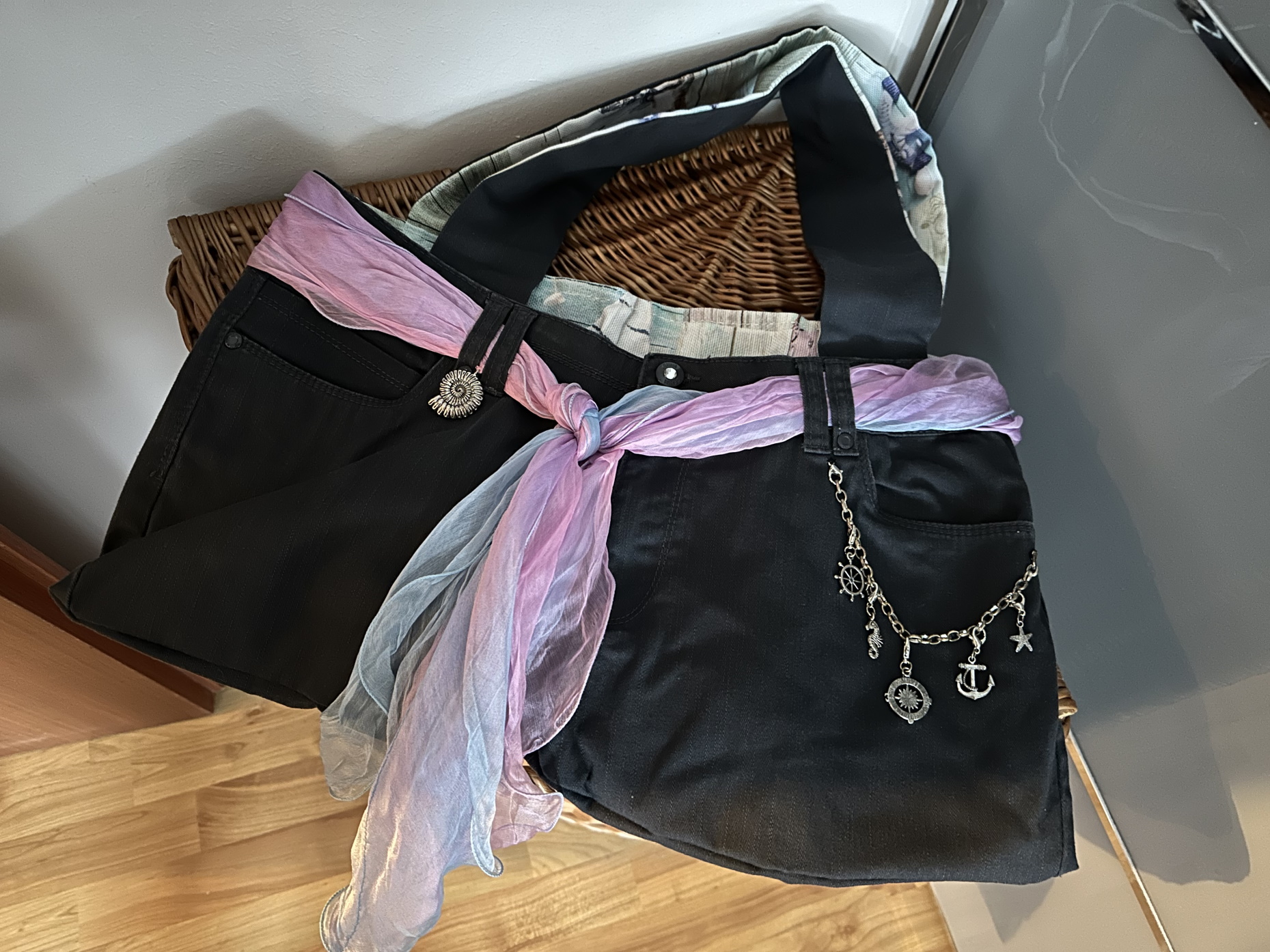 oh, da werden meist Taschen von genäht und das in allen möglichen Varianten, von der Collegstasche bis zum Bobbelbeutel und einer Tasche an meinem Rollator