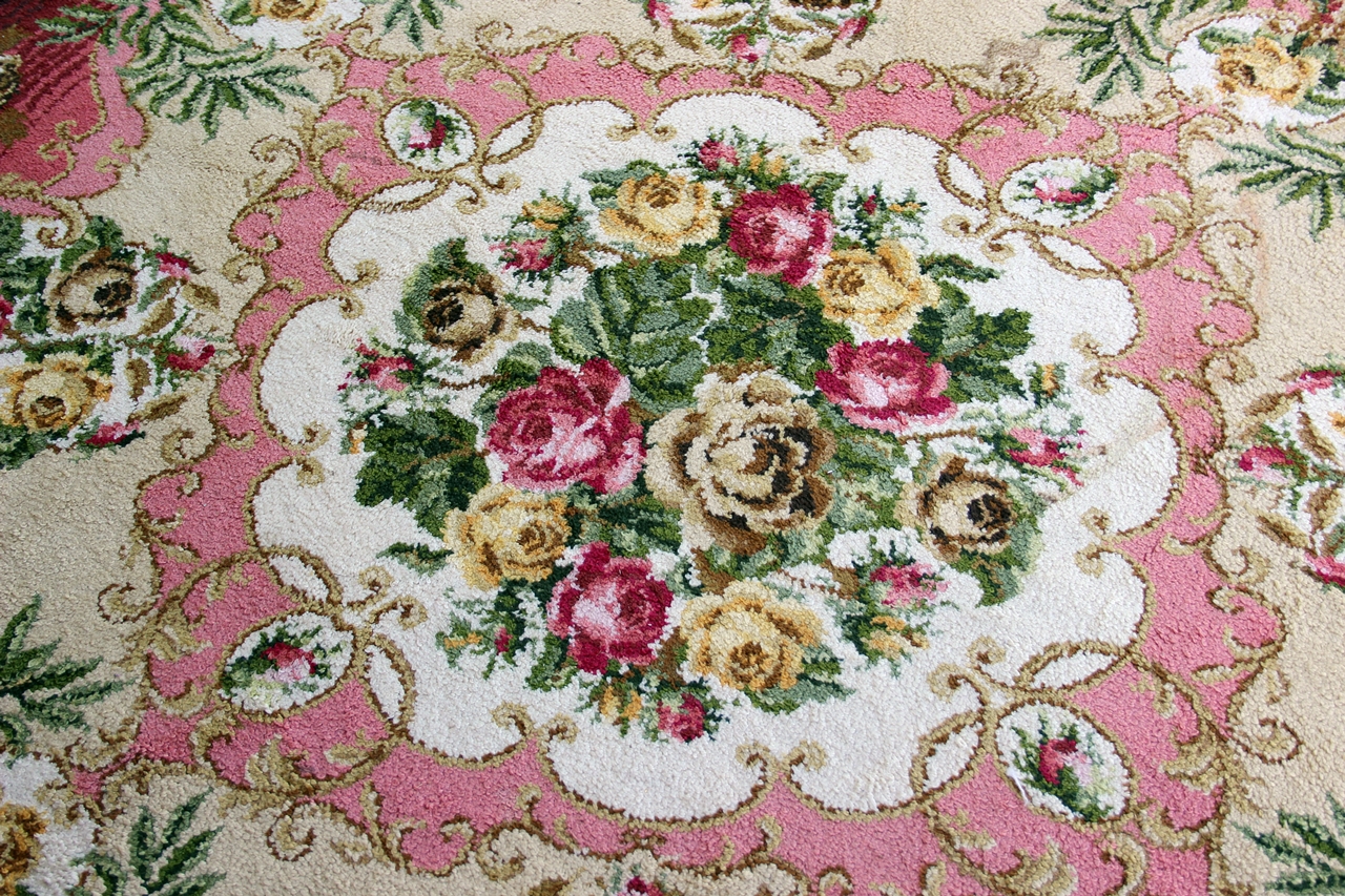 Geduld und Ausdauer für später. Denn da habe ich (ca. vor 25 Jahren) einen großen Teppich geknüpft. Da gab es natürlich eine Vorlage und bereits geschnittene Schurwolle-Fäden. Der Teppich hat einen Durchmesser von 2,30 m. Er liegt seit Jahren in unserem Wintergarten und macht uns warme Füße.