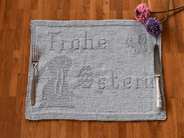 Dieses Tischset macht richtig Lust auf Ostern und ist ganz einfach zu stricken. Es werden nur rechte und linke Maschen benötigt. Die Anleitung beschreibt jede Reihe maschenweise, so dass das Nachstricken bereits Anfängern mit guten Grundkenntnissen gelingt.