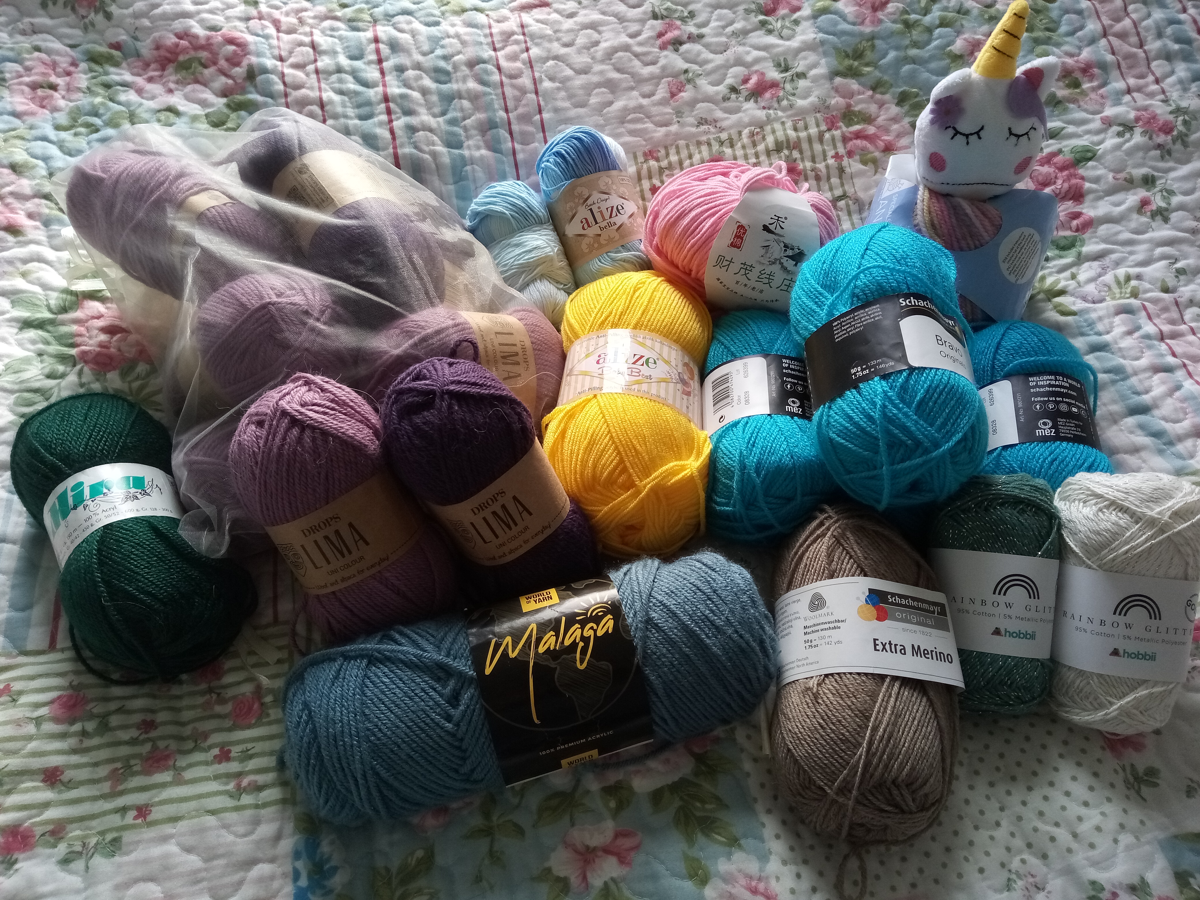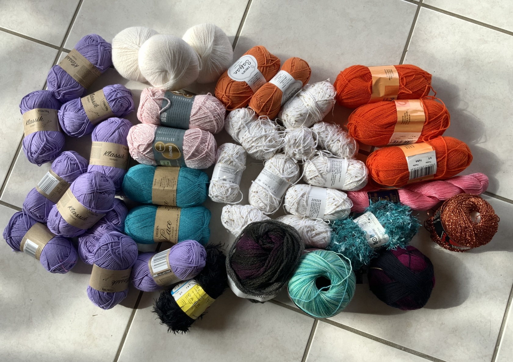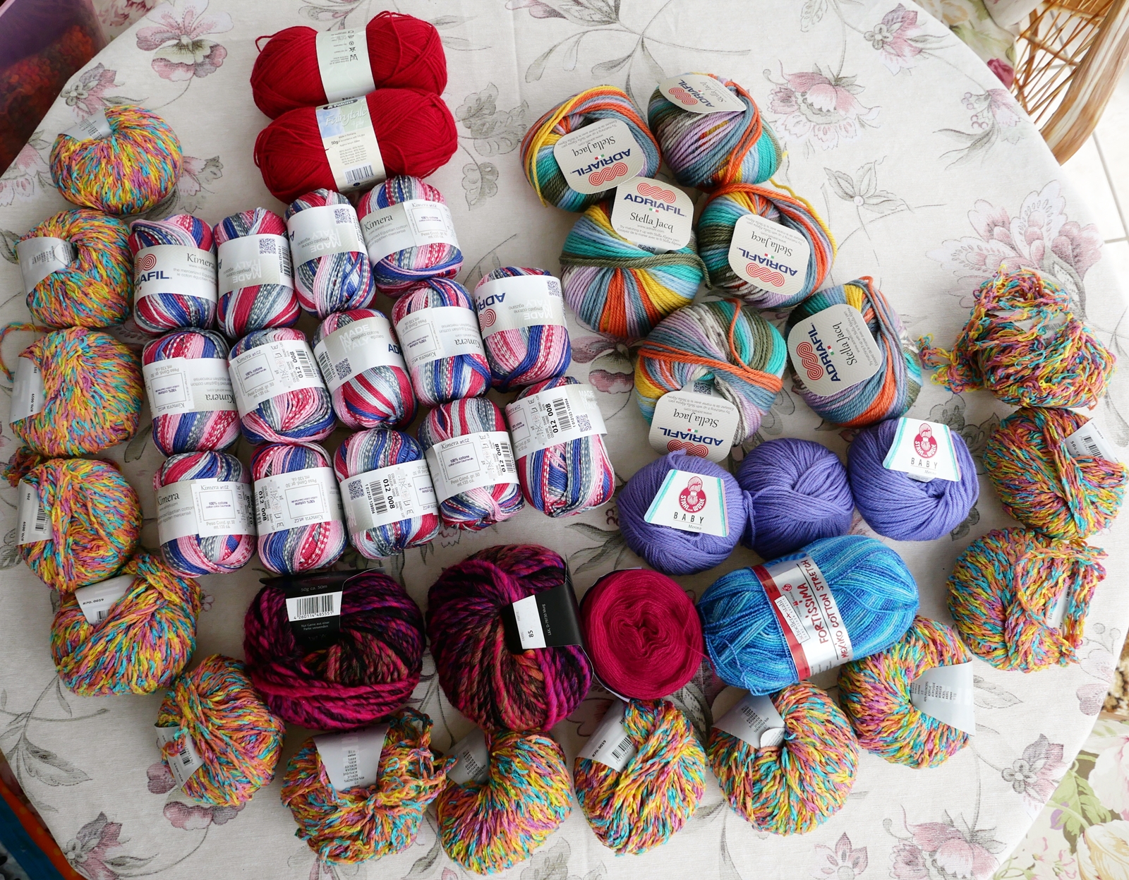 mittlerweile ist das Tauschpaket wieder bei mir gelandet. Fast alle meine Wollen, die die Reise angetreten haben, haben ein neues Zuhause gefunden. Aber sie hatten dazu ja auch 9 x die Gelegenheit. Mir haben diese Wollen hier gefallen; ich habe aber noch keine konkreten Pläne für sie im Kopf. Erstmal finde ich sie schön (bunt). Ich muss mit jeder der bunten Wollen erstmal eine kleine Probe stricken oder häkeln, um zu sehen, wie sie sich entfalten. Die 2 dicken Knäule mit der Farbverlaufswolle werden bestimmt mal Rollkragen für Filzhausschuhe.