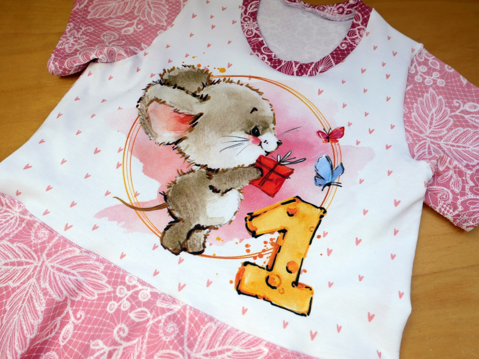 Zuerst habe ich dieses niedliche Panel mit der 1. bei etsy entdeckt! Dann war ich am Überlegen, was ich daraus machen könnte. So habe ich mich an ein Kleid mit Drehrock gewagt. Das Panel passte gerade so auf die Vorderseite, ohne dass ich das Motiv abschneiden musste.