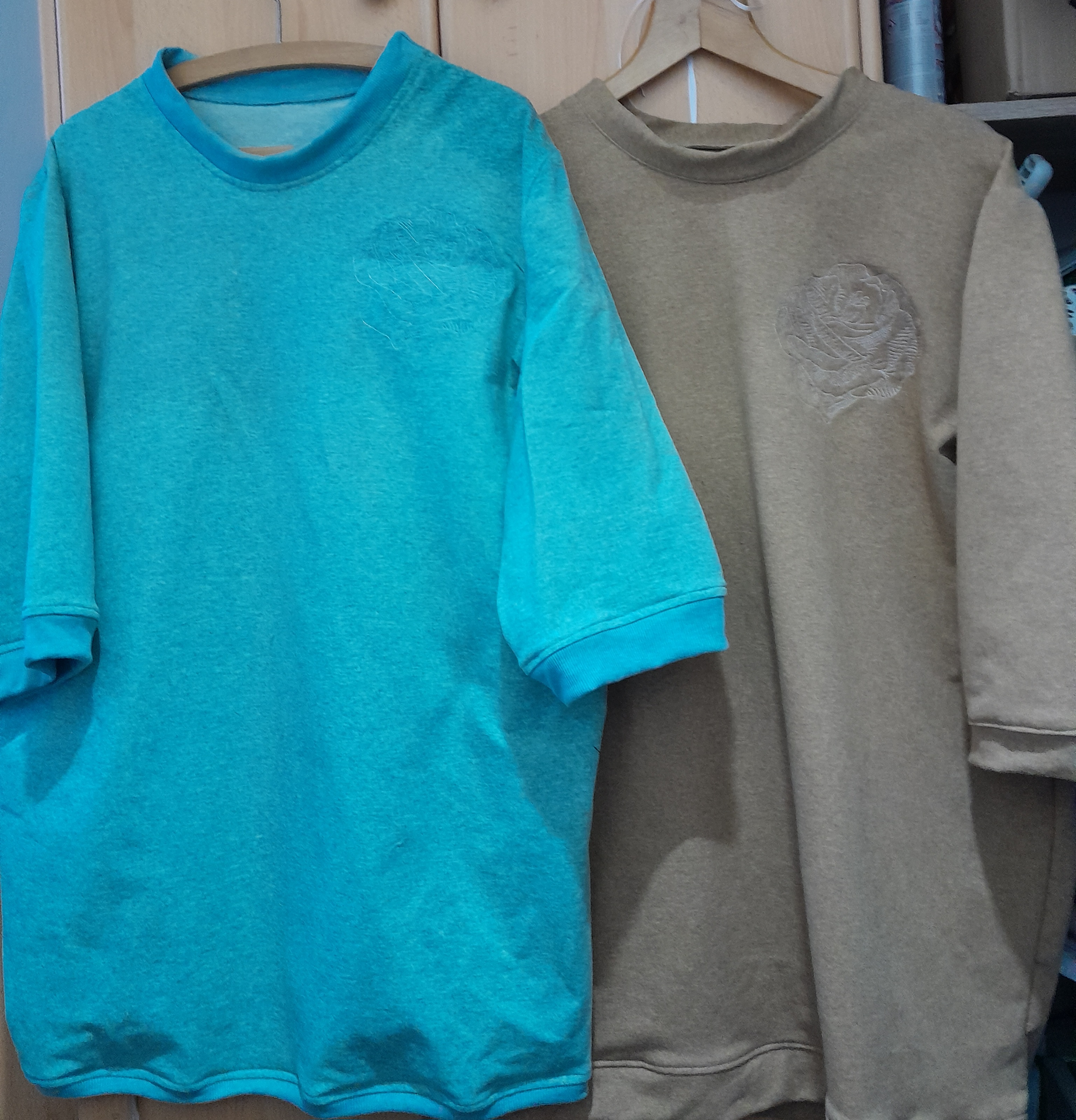 so meine Shirts sind genäht, und bei beiden Shirts oben in der linken Schulter eine Rose gestickt