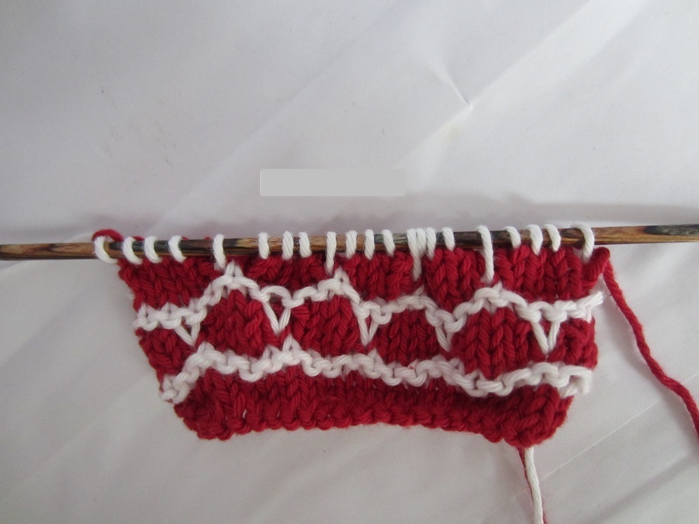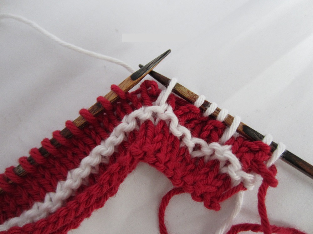 Voraussetzung ist allerdings, dass man das Strickstück mit mindestens zwei Farben strickt.