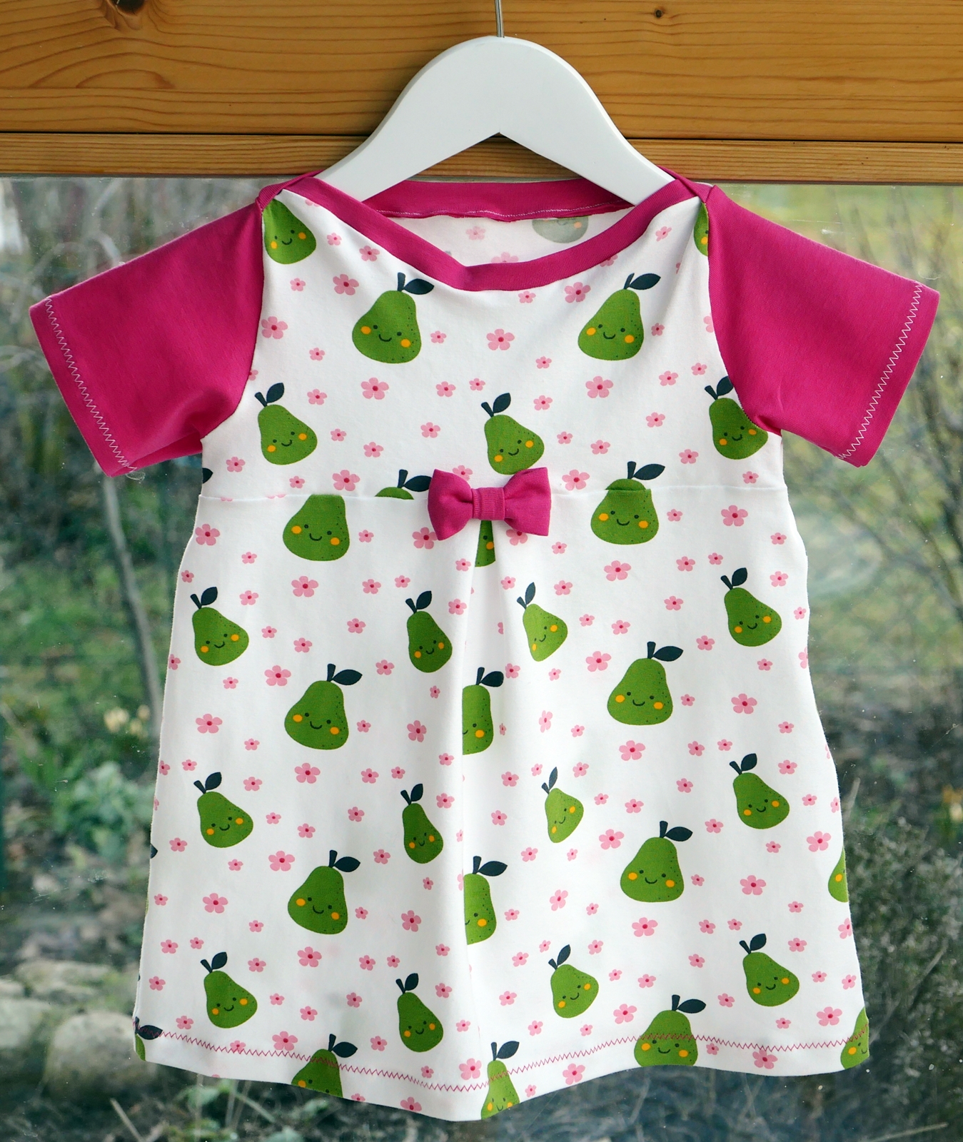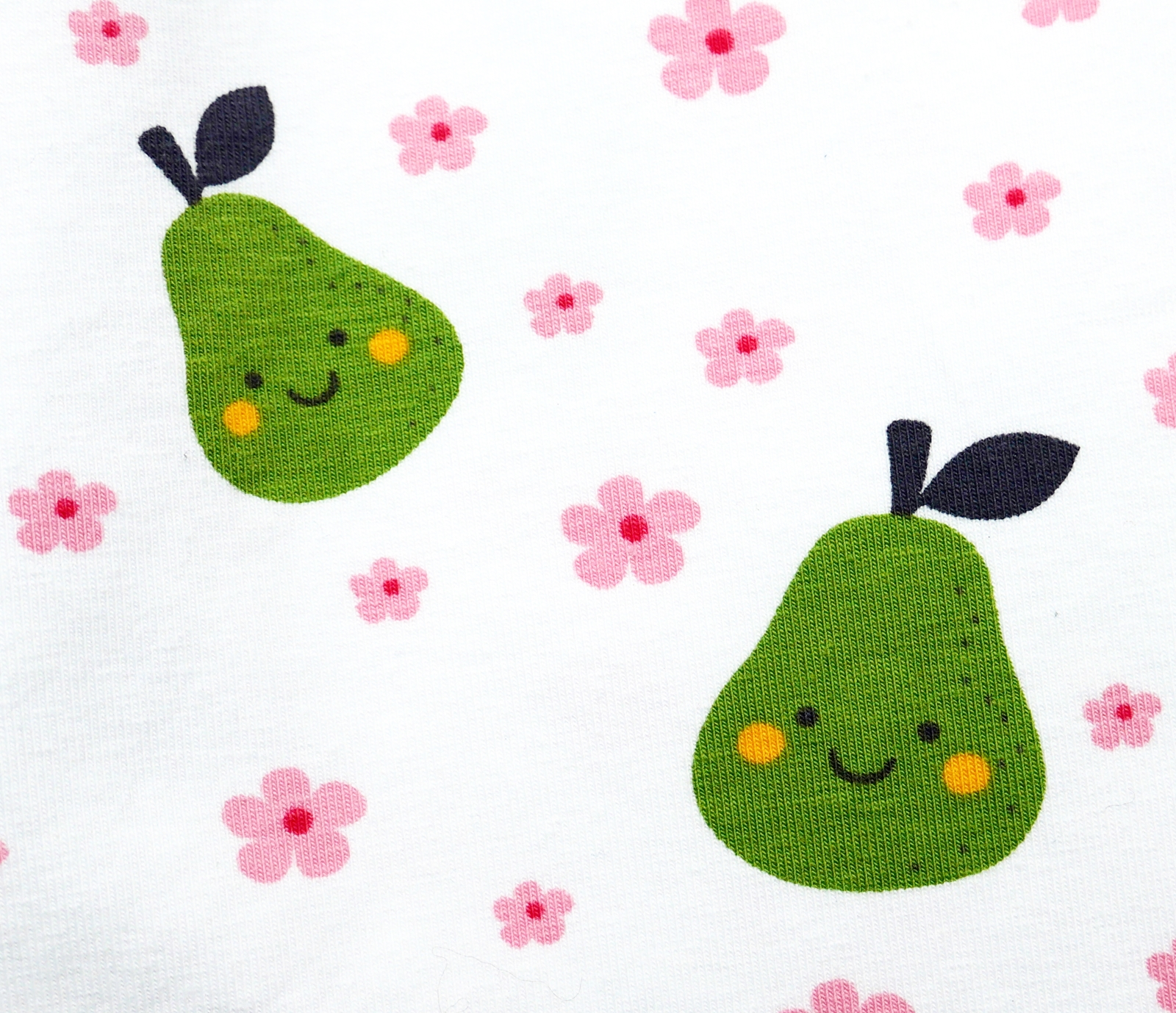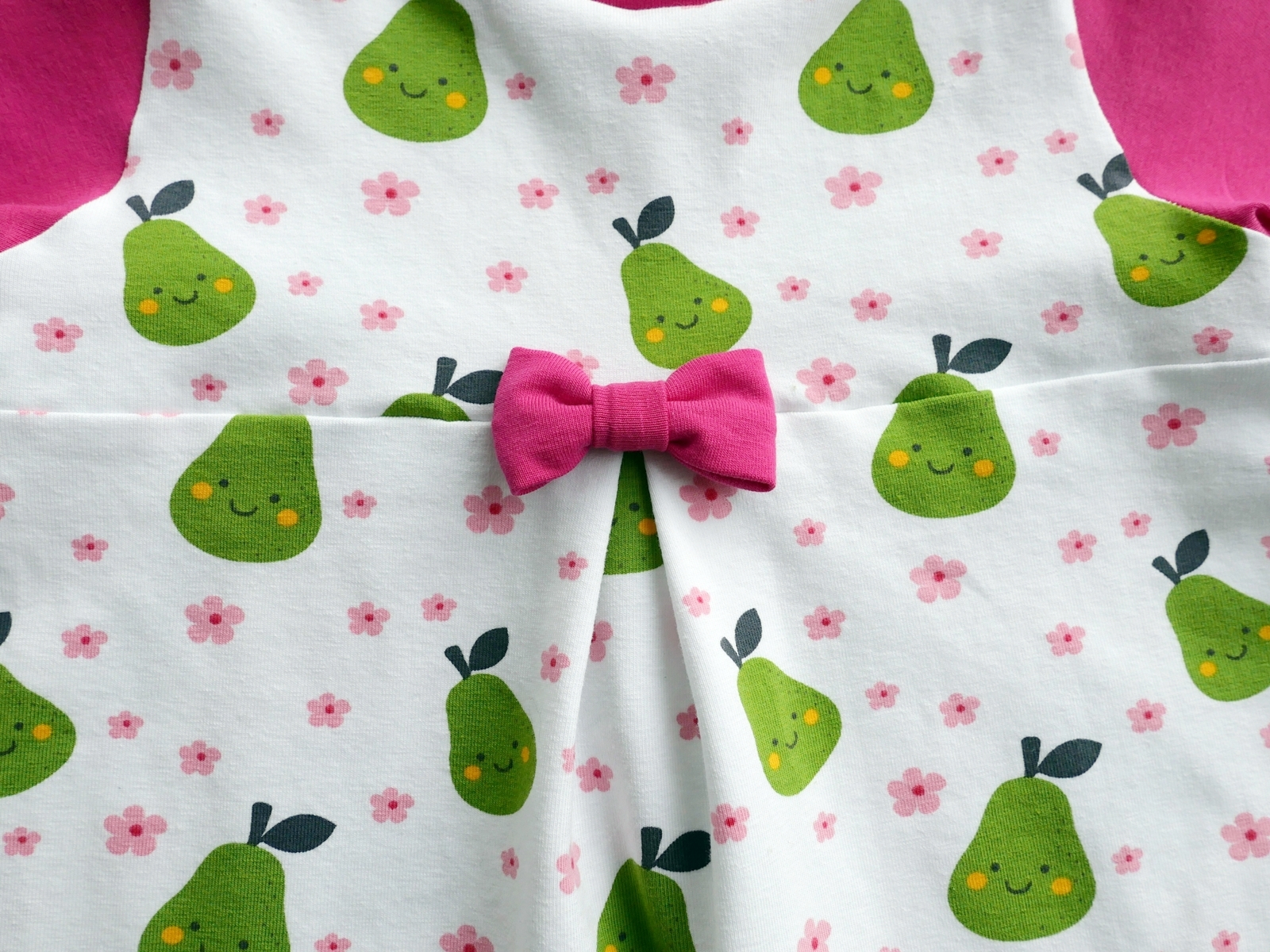 in meiner Tauschbörse habe ich neulich ein kleines Stück Baumwolljersey getauscht. Die kleinen Birnchen darauf haben mich so angelacht.