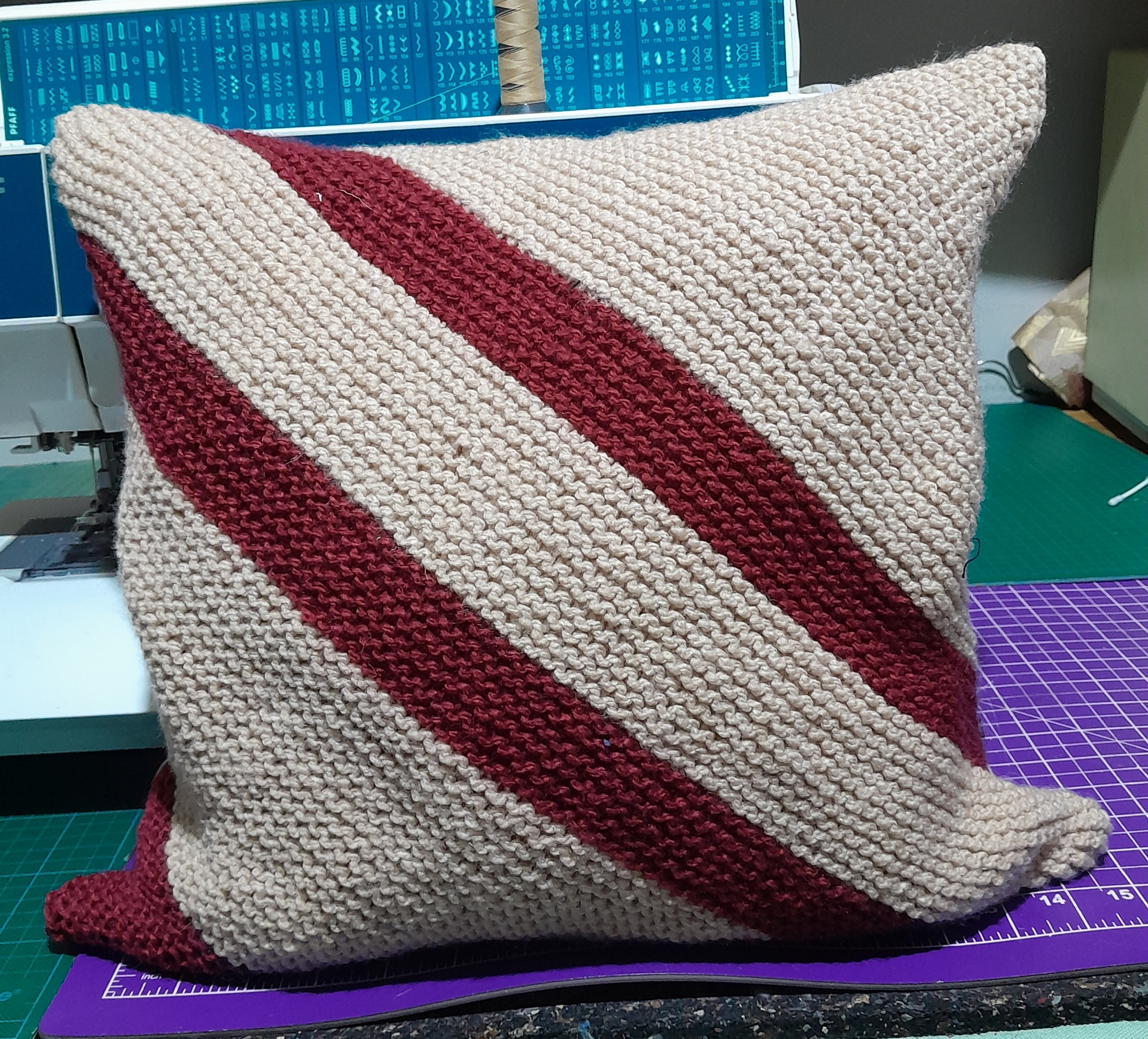 Du bist fleißig, liebe Inge. Aber da die große Decke Dir so gut von der Hand gegangen ist und das Kraus-rechts-Muster sehr entspannend beim Stricken ist, verstehe ich, dass Du noch ein Kissen gestrickt hast. Nun hast Du ein Set und kannst es Dir damit auf der Couch gemütlich machen.