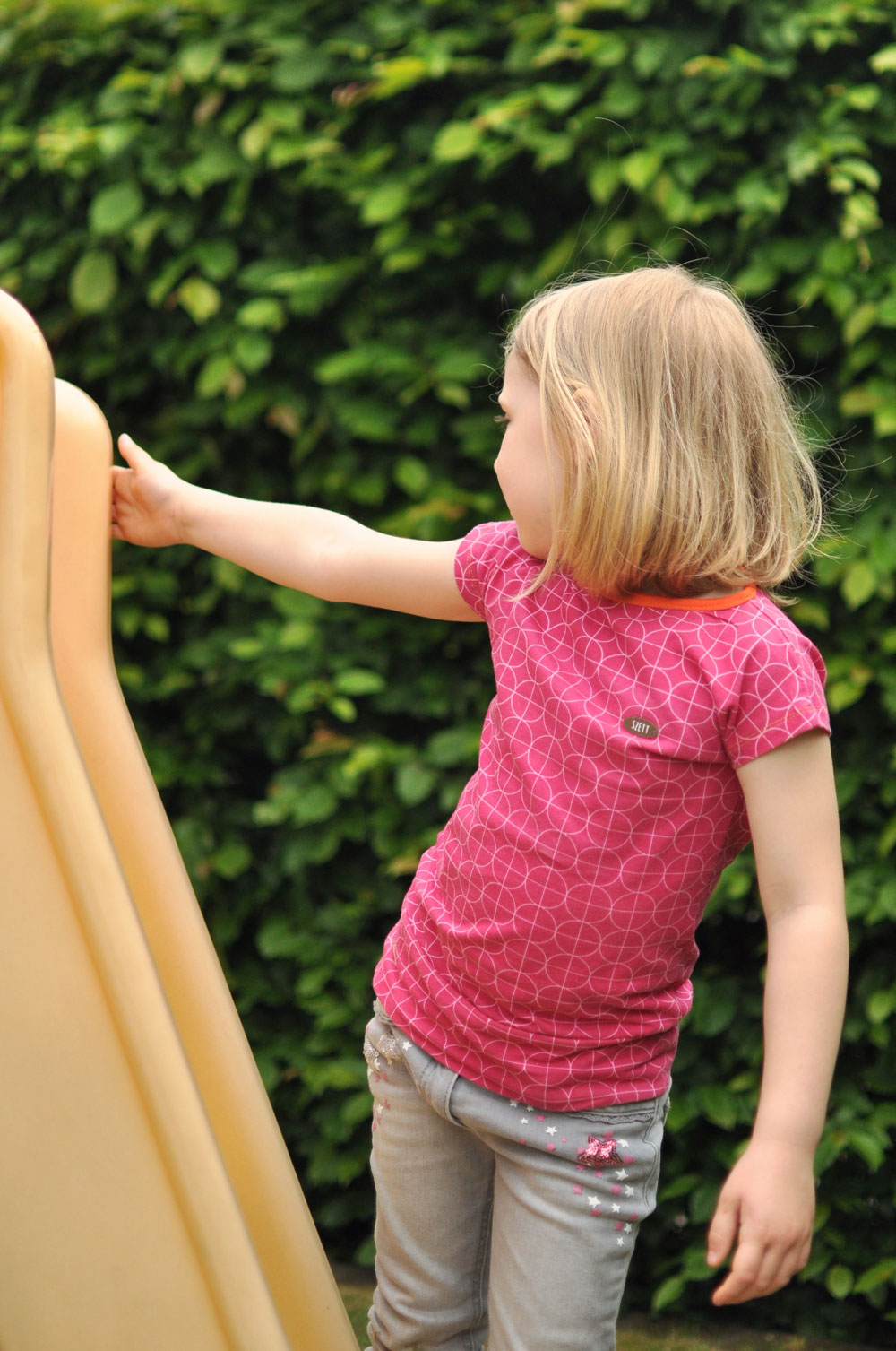 Mädchen T-Shirt LITA in Gr. 98-128 ist sehr einfach und schnell genäht, weil es nur aus 2 Teilen besteht. Durch einen angesetzten Rock wird LITA schnell zum Kleid. Durch Teilungen können Reststücke verwendet werden.