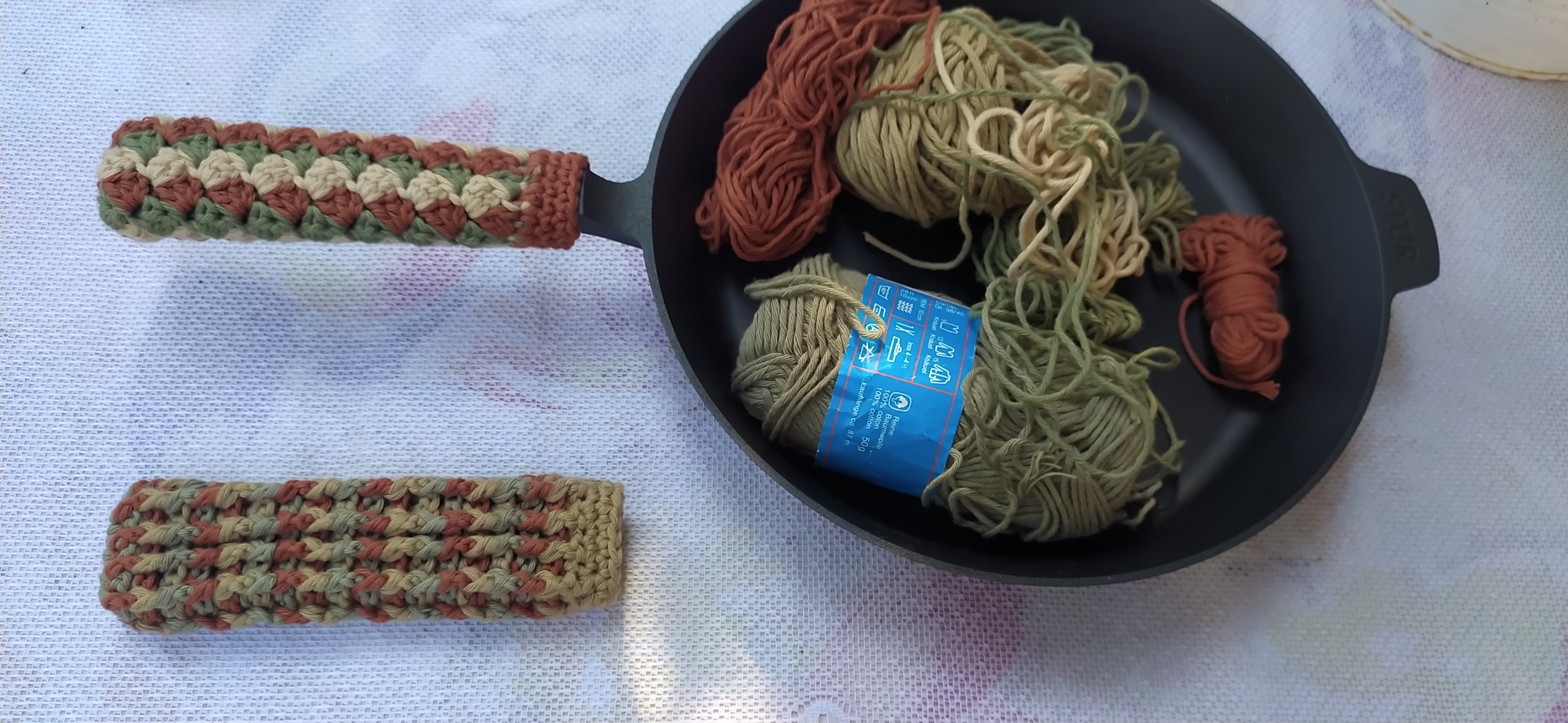Eine praktische Idee ist der Häkelschutz am Pfannenstil. Gefällt mir. Und erst die Nudeldose - die ist echt der Hit!