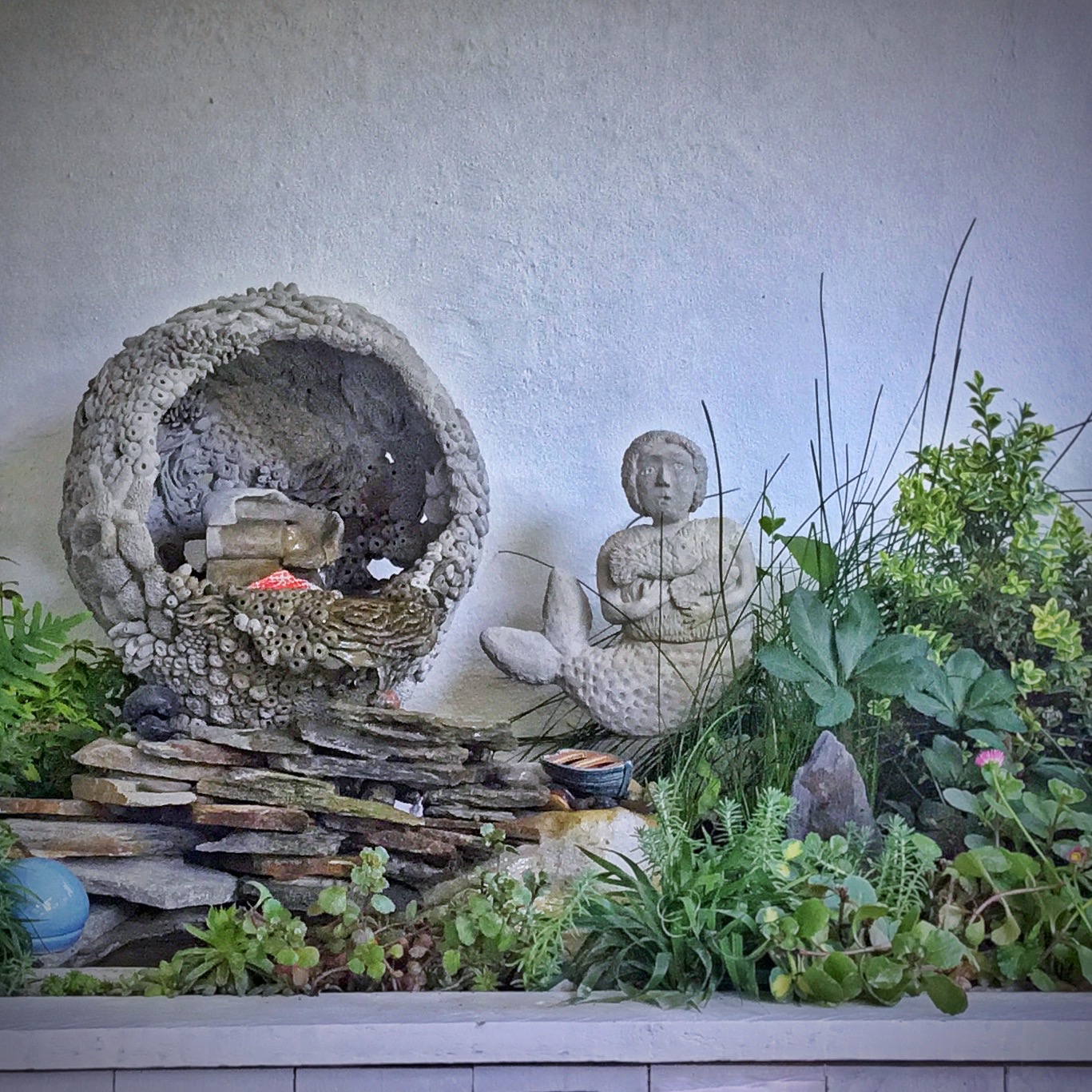 Claudia, deine Decke ist ein echtes Kunstwerk. Wow! Ich bin echt beeindruckt! Auch deine Betonkunst bewundere ich, der Brunnen ist der Wahnsinn, und das ist ja noch nicht alles. Das wäre so gar nichts für mich. Einen großen genähten Kaktus vor die Tür zu stellen, ist ja auch mal eine ganz coole Idee. Darauf wäre ich nie gekommen.