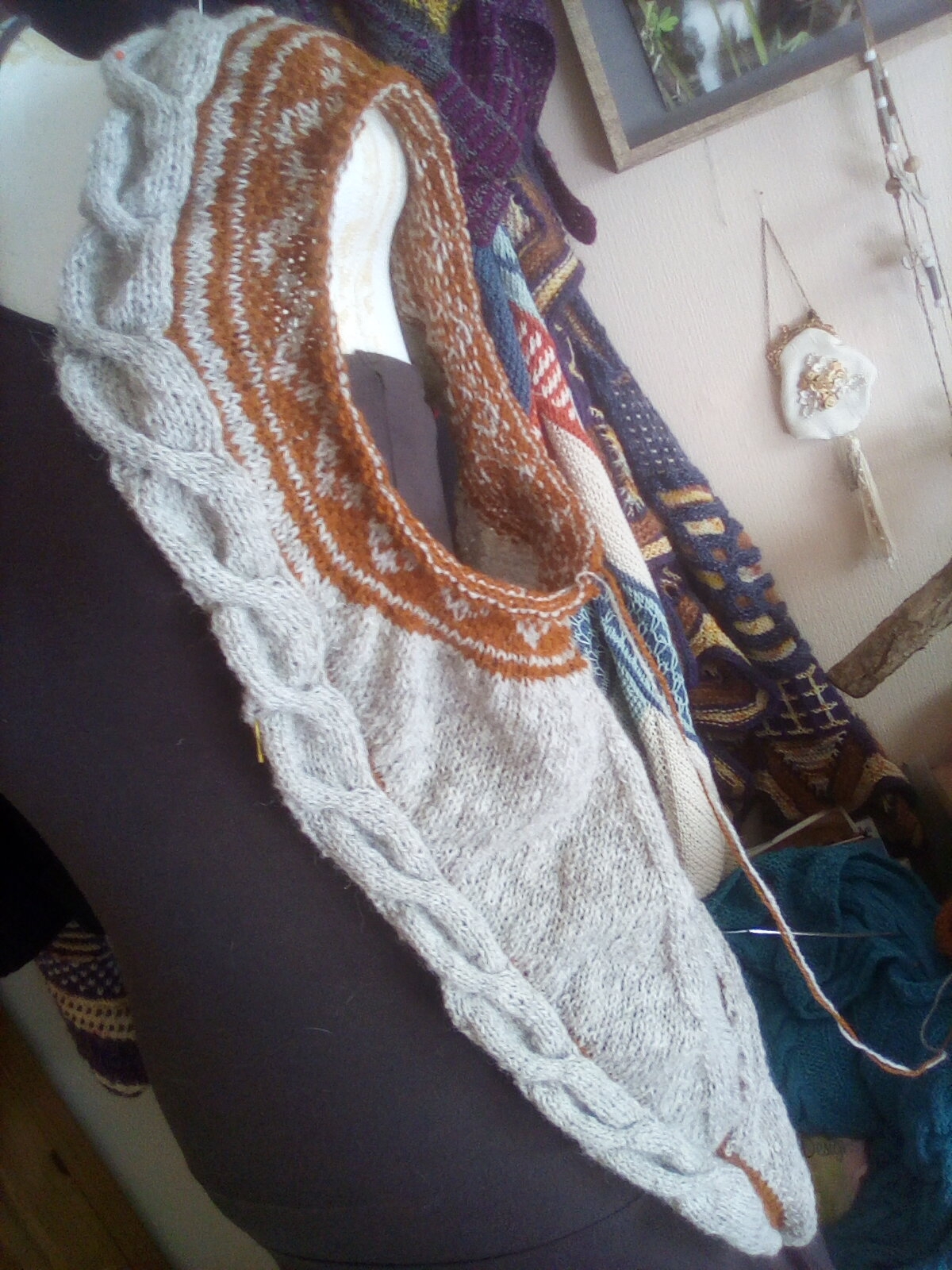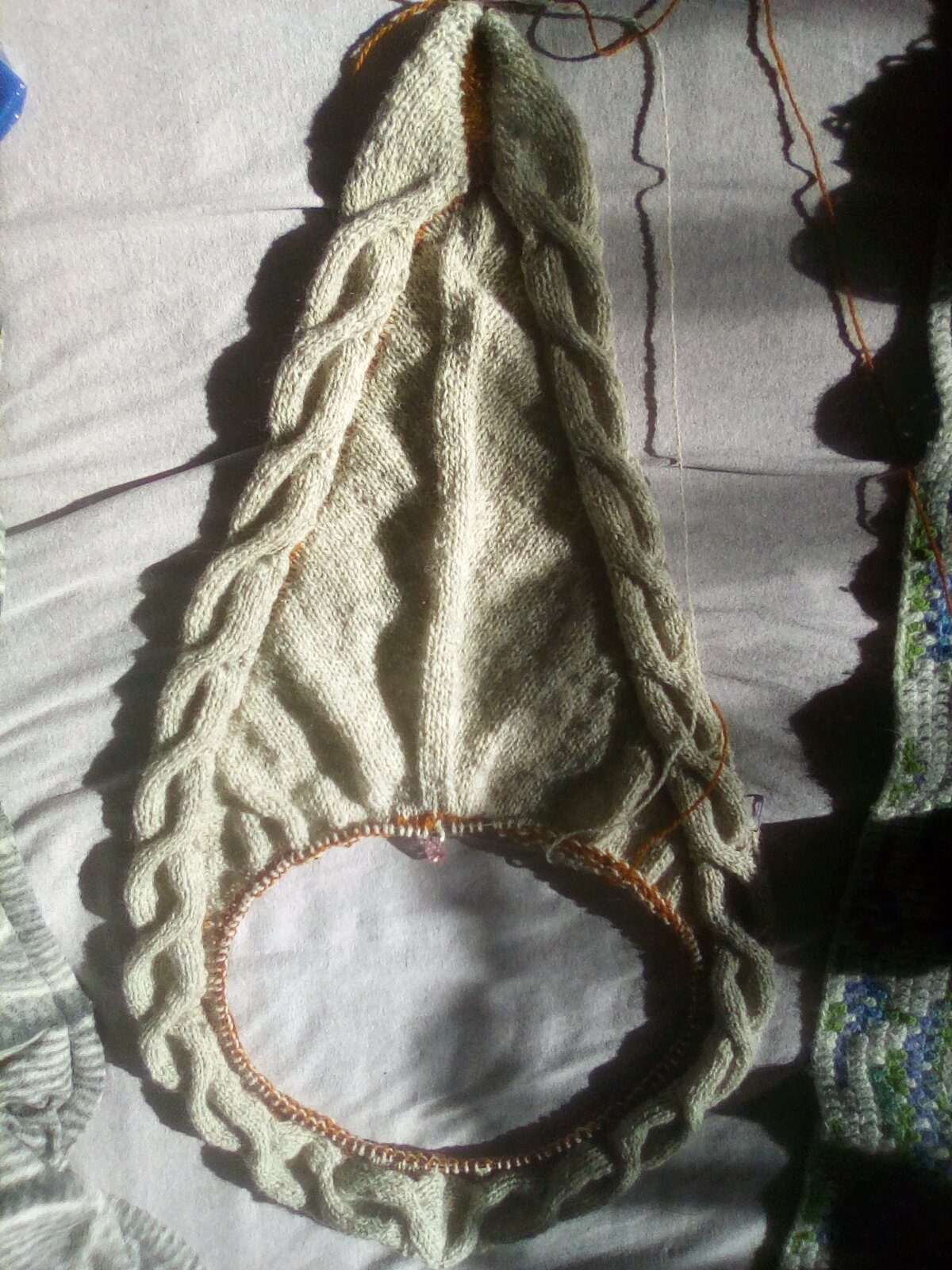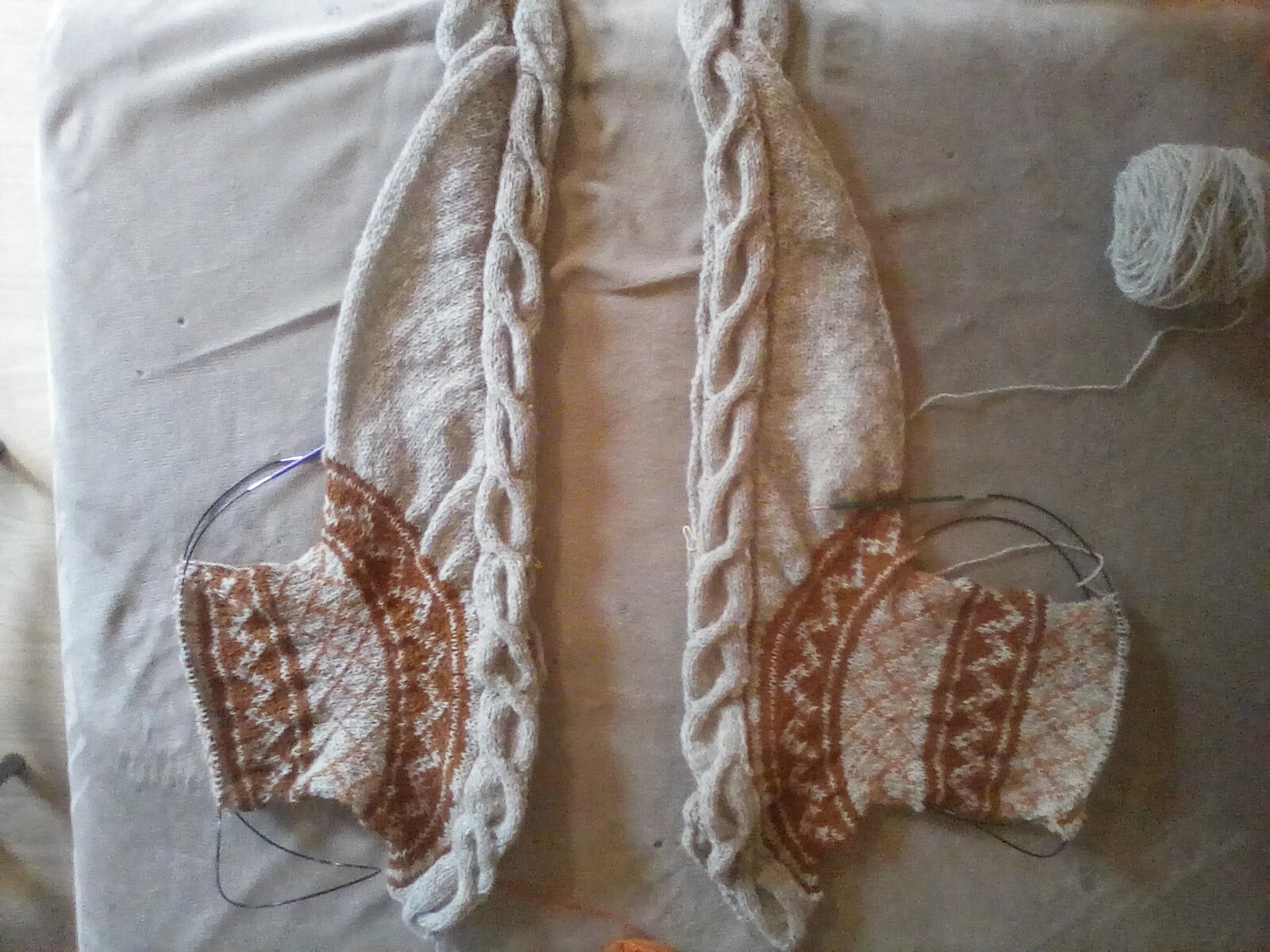 Dein Zopfpullover sieht in seinen Einzelteilen jetzt schon gut aus. Allerdings kann ich mir noch nicht so recht vorstellen, wie er fertig aussehen wird. Es ist immer spannend bei dir.