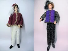 Wenn Puppenmamas mit ihren Püppchen Prinzessin spielen, dann brauchen sie natürlich auch einen Prinzen dazu! Dieses Prinzenkostün für männliche Modepuppen von 30 cm Größe besteht aus einer Jacke, einer Hose und einem Barrett mit Feder. Natürlich wurde hier auch Glitzerwolle verarbeitet, um das Kostüm prächtiger zu gestalten. Ich habe sowohl von der Jacke als auch von der Hose und dem Federhut je 2 unterschiedliche Variationen gehäkelt, so dass die Teile miteinander kombiniert werden können.