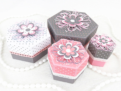 Wenn du oft kleine Geschenke machst, dann benötigst du sicher immer wieder eine hübsche Verpackung dafür. Bei diesen vier sechseckigen Schachteln hast du nun eine kleine Auswahl und die Möglichkeit, eine perfekt passende zu finden.