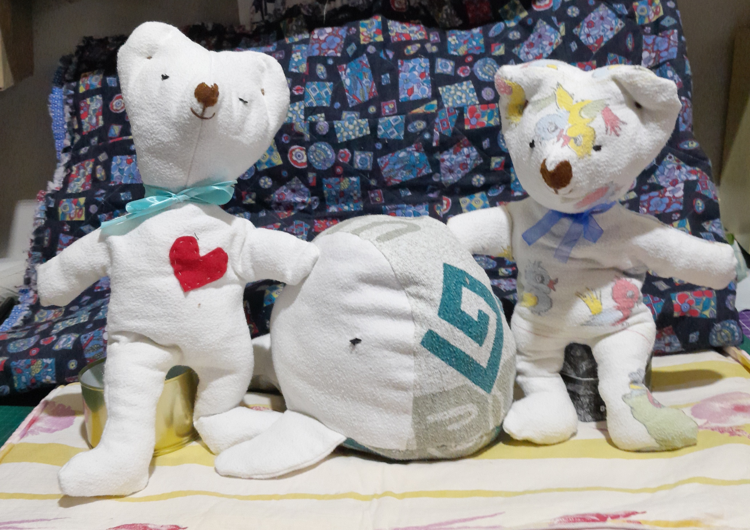 jetzt wird für den Weihnachtsmarkt der Kindertafel genäht, die ersten Viecherl sind fertig,