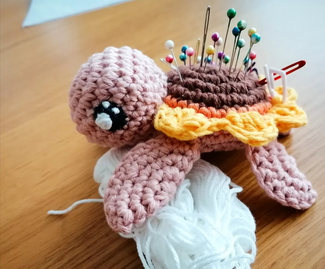 Ich habe heute etwas dickere Baumwolle zu einem neuen Nadelkissen verhäkelt. Mein Geburtstagsgeschenk an mich selbst  :‐)