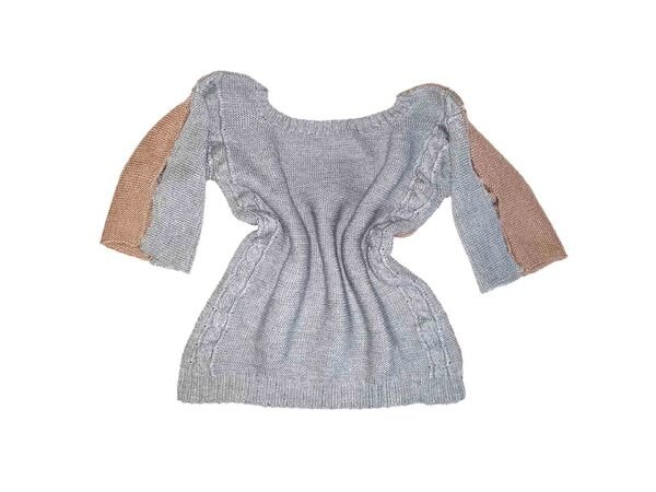 Der Pullover besteht aus zwei identischen Teilen in verschiedenen Farben.