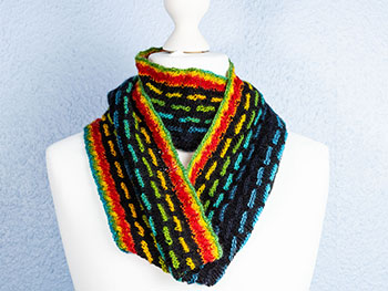 Klick hier und du kommst zum gestrickten Dreieckstuch „ Rosenrot “