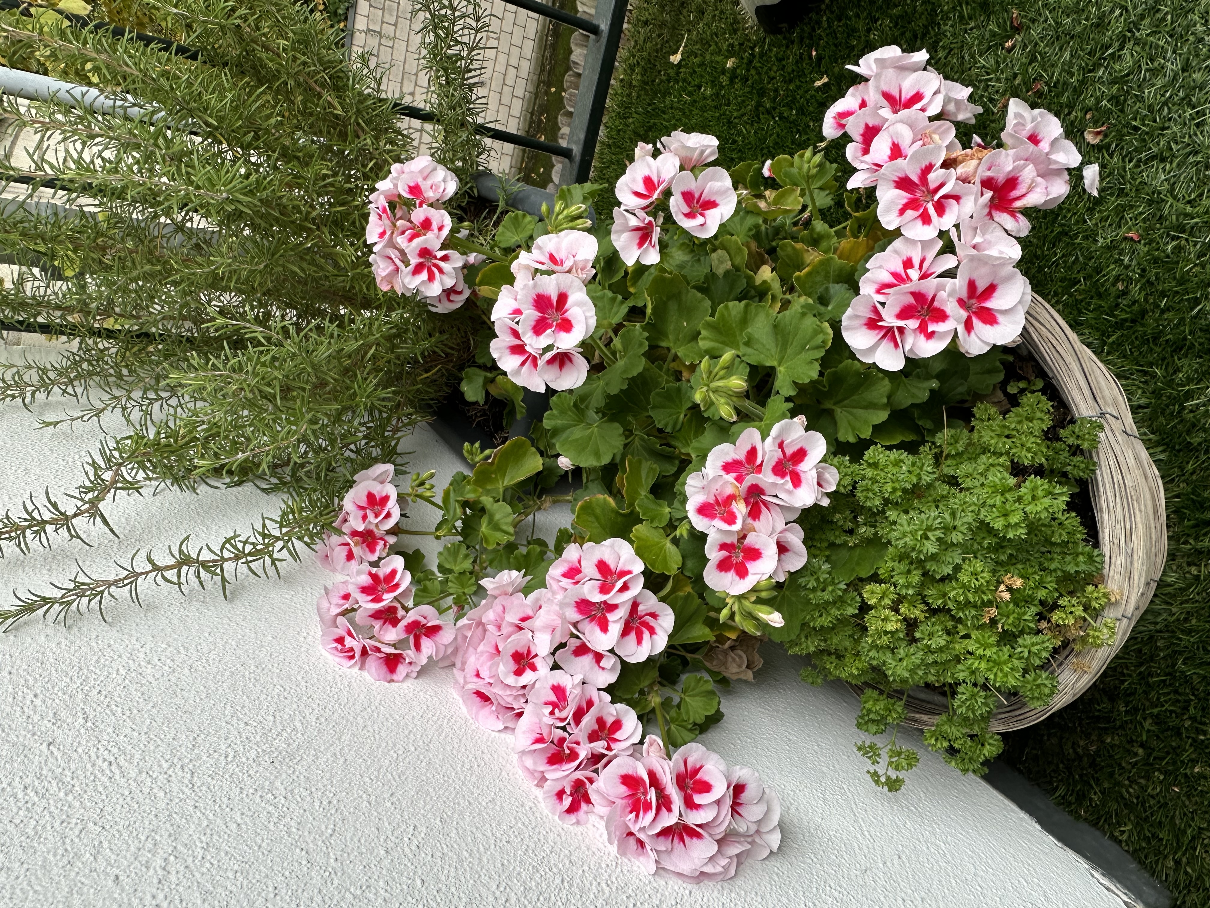 Es ist zwar noch mild, regnet aber. Ich habe mal angefangen, die Sommerblumen vom Balkon zu räumen. Die Geranien sind noch in voller Blüte und voller Knospen, die dürfen noch bleiben.