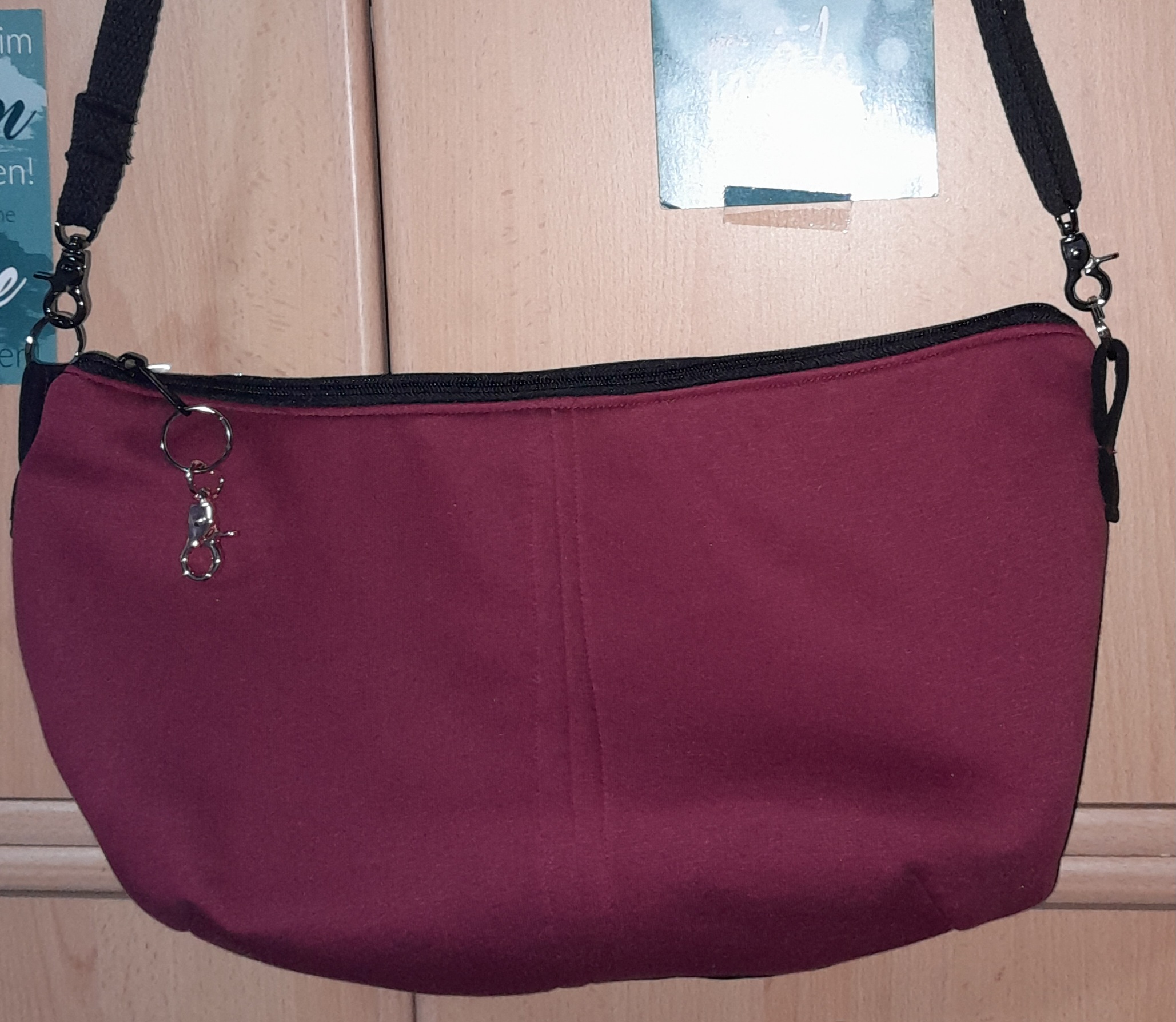 hab mal in meiner Restekiste gestöbert und bin fündig geworden, denn ich hab es gerne wenn Outfit und Tasche zusammenpassen. Die Rückseite ist ein Rest von einer schwarzen Hose von mir. Vorne der