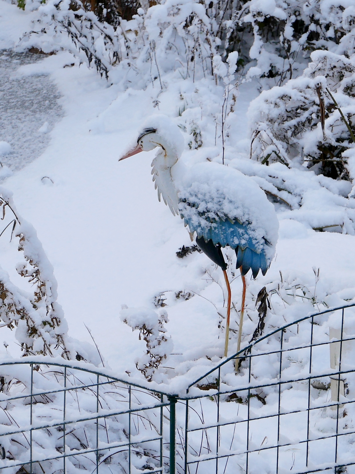 Bei mir ist es sehr schön verschneit. Ich genieße die weiße Pracht. Allerdings lieber durch einen Blick in menen winterlichen Garten. Es darf ja nicht mehr mit Salz gestreut werden und so sind die Wege unter dem Schnee sehr vereist. Das ist eine rutschige Angelegenheit, da braucht man Sohlen mit Gripp.