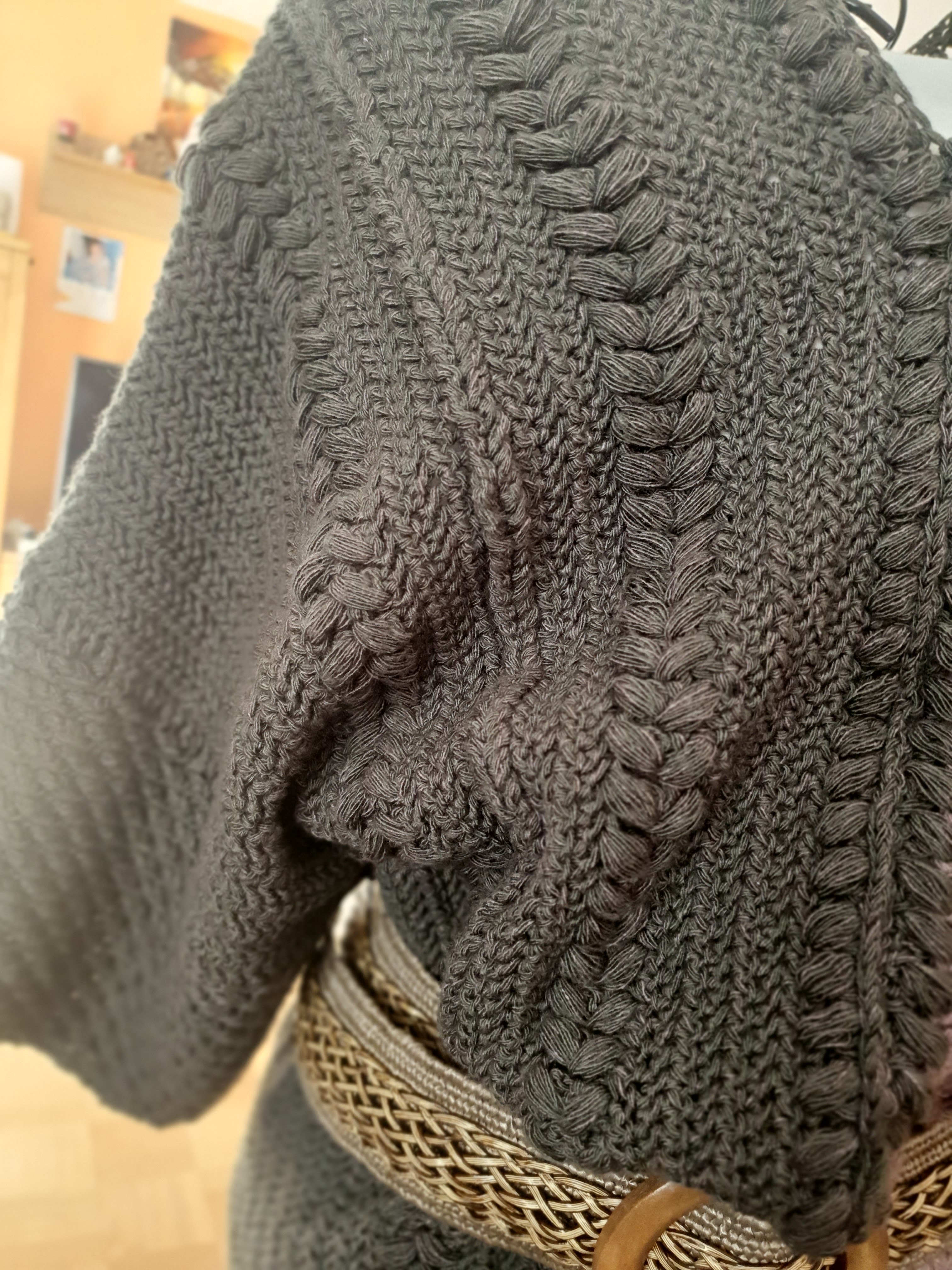 Gehäkelt in Fischgräten Optik, sieht er aus wie gestrickt.