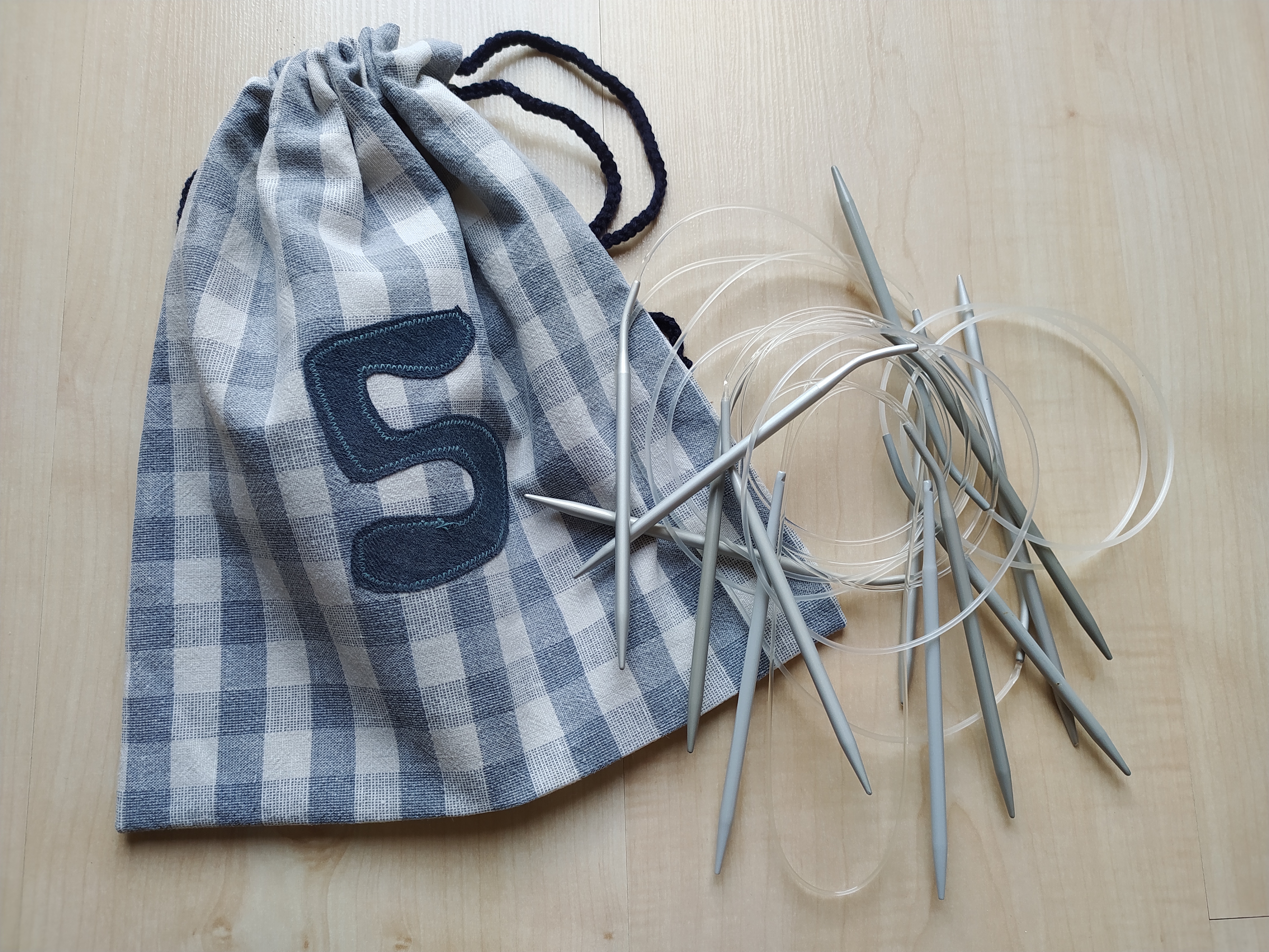 Und ich habe ein Nadelsäckchen für meine 5er Rundstricknadeln aus einer alten Tischdecke genäht. Somit Stoffvorrat verkleinert und Ordnung in meiner Stricknadelkiste gemacht.