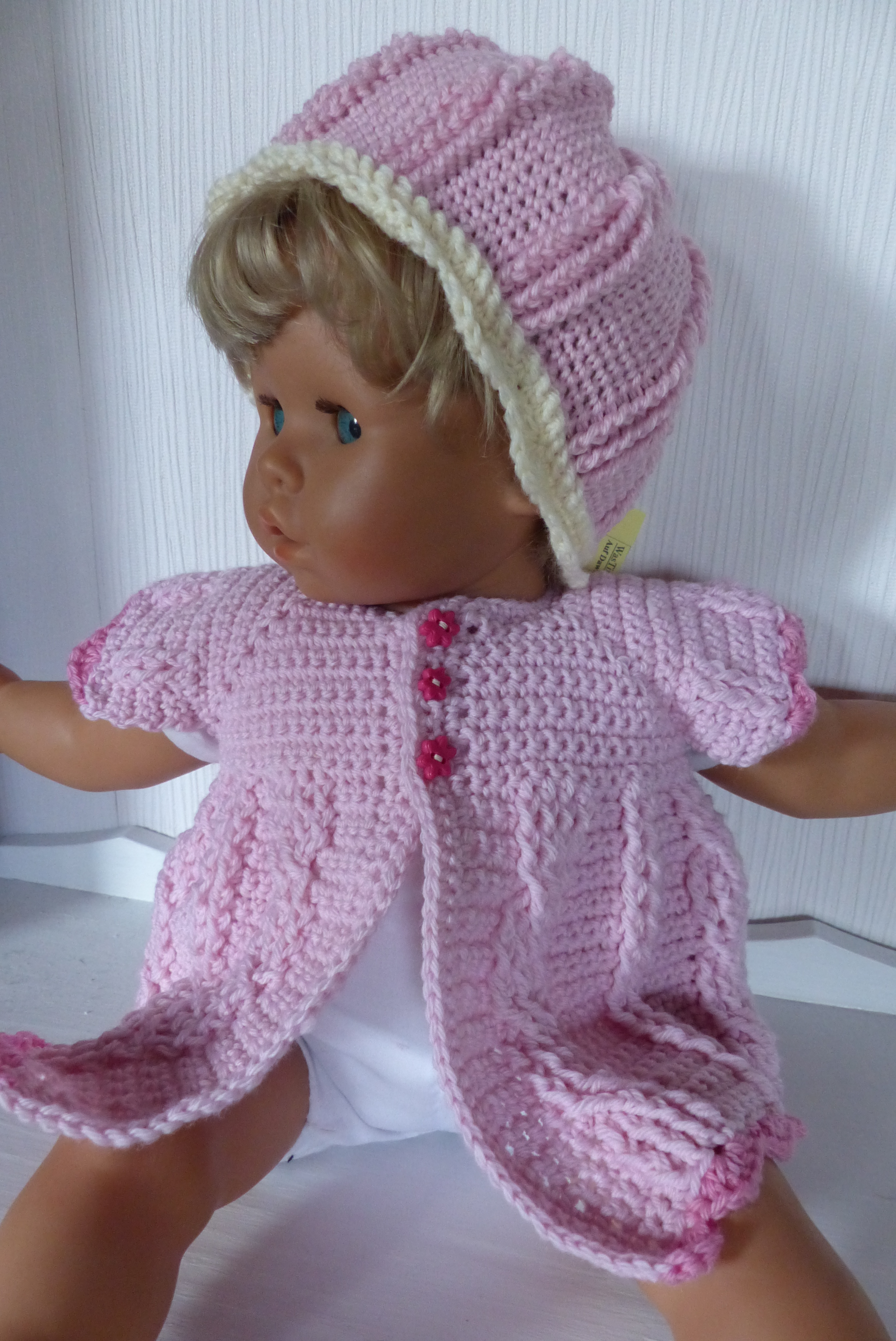 Eine Jacke kann ich zeigen mit passender Mütze für ein Puppenbaby