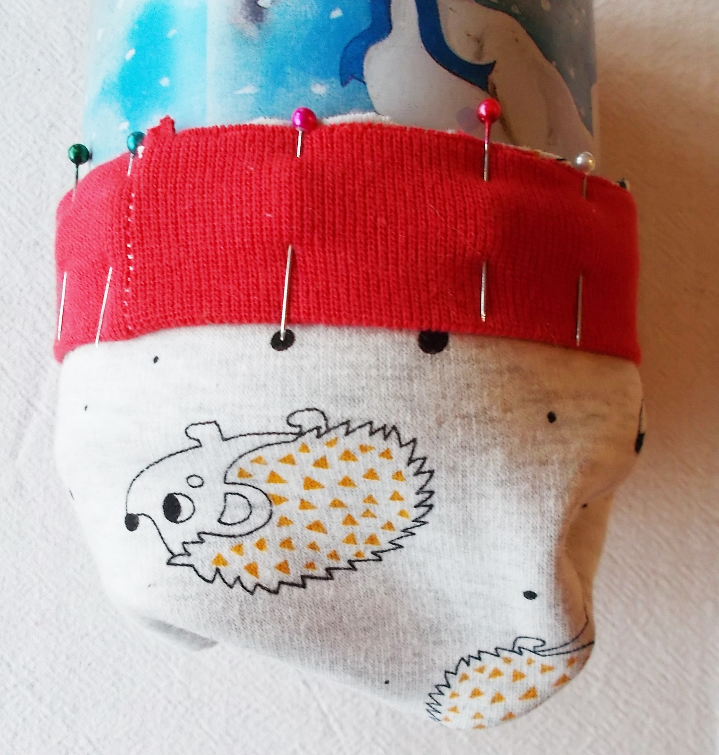 Nach dem Feststecken zog ich den Rock mit Bündchen wieder herunter und konnte mit dem Nähen beginnen.