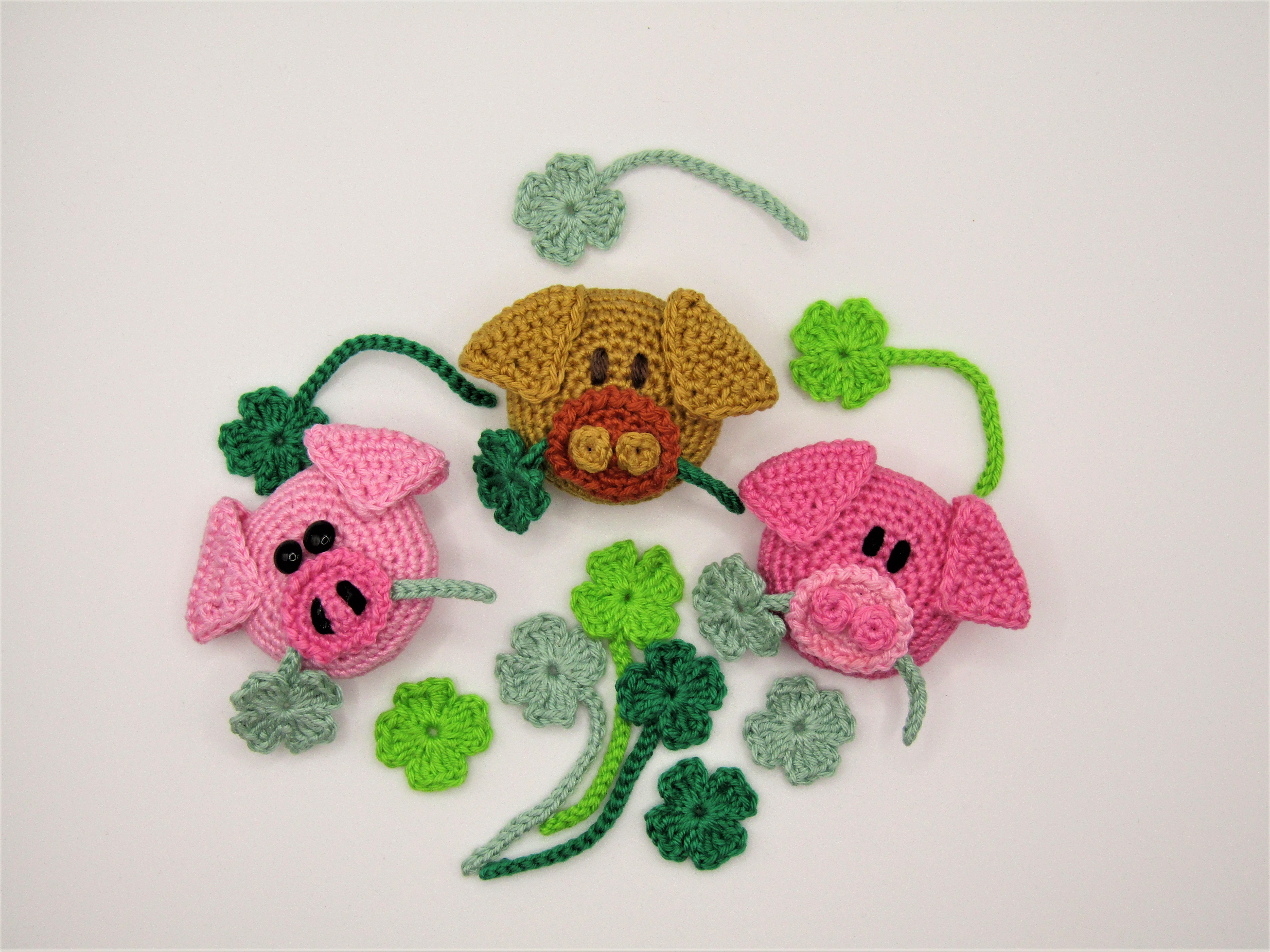 sind schnell gehäkelt. Man benötigt nur: Baumwollgarn, Häkelnadel 2,5 mm, Füllwatte, zum Stopfen kannst du einen Bleistift ohne Spitze verwenden, Textilkleber, Stopfnadel und Schere. Du siehst, wenig Aufwand für das Material, für ein neues Hobby mit Suchtgefahr. Und Du hast jederzeit ein kleines Geschenk für Familie - Freunde - Bekannte oder Kollegen parat, um ihnen Glück zu wünschen.