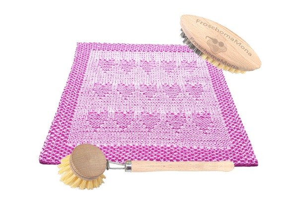 herzförmige Lebkuchen-Topflappen, die du wie bei einem Lebkuchenherz mit einer ganz persönlichen Botschaft beschriften kannst. Die Schrift besteht einfach aus Luftmaschenketten, die entsprechend geformt und aufgenäht werden.