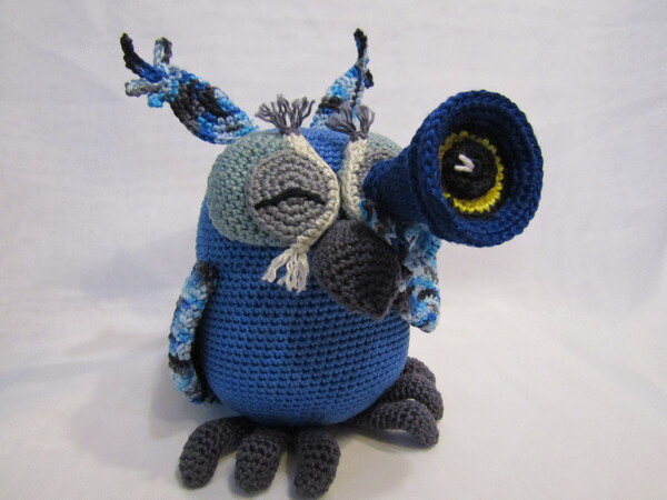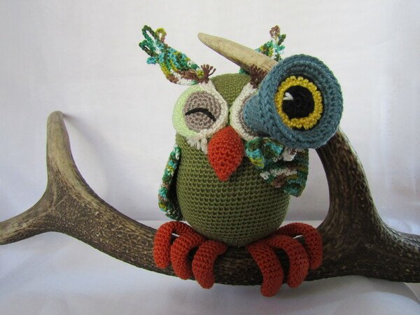 Eule *Curious,*beobachtet gerne das Weltgeschehen, um immer auf dem laufenden zu bleiben. Die Eule ist eine witzige Bereicherung, für deine Eulensammlung. Die Häkelanleitung ist 12 Seiten lang im PDF-Format mit vielen Bildern zu den einzelnen Arbeitsschritten. Eule Curious ist 17 cm groß bis zu den Ohrspitzen.