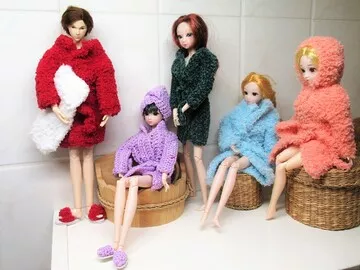 Und nach einem Badetag macht man es sich in einem kuscheligen Bademantel gemütlich. Du kannst ihn mit oder ohne Kauze und mit jedem beliebigen Garn häkeln. Es gibt eine Version für weibliche und eine für männliche Ankleidepuppen.
