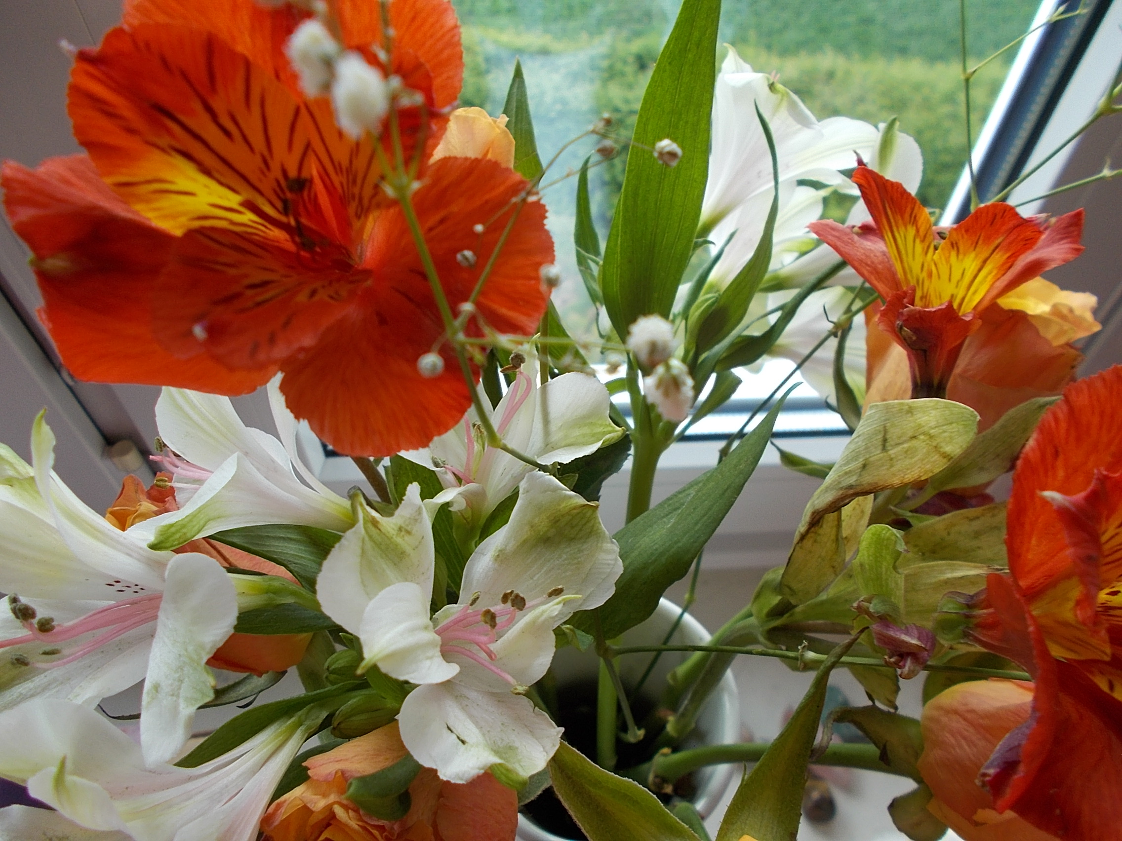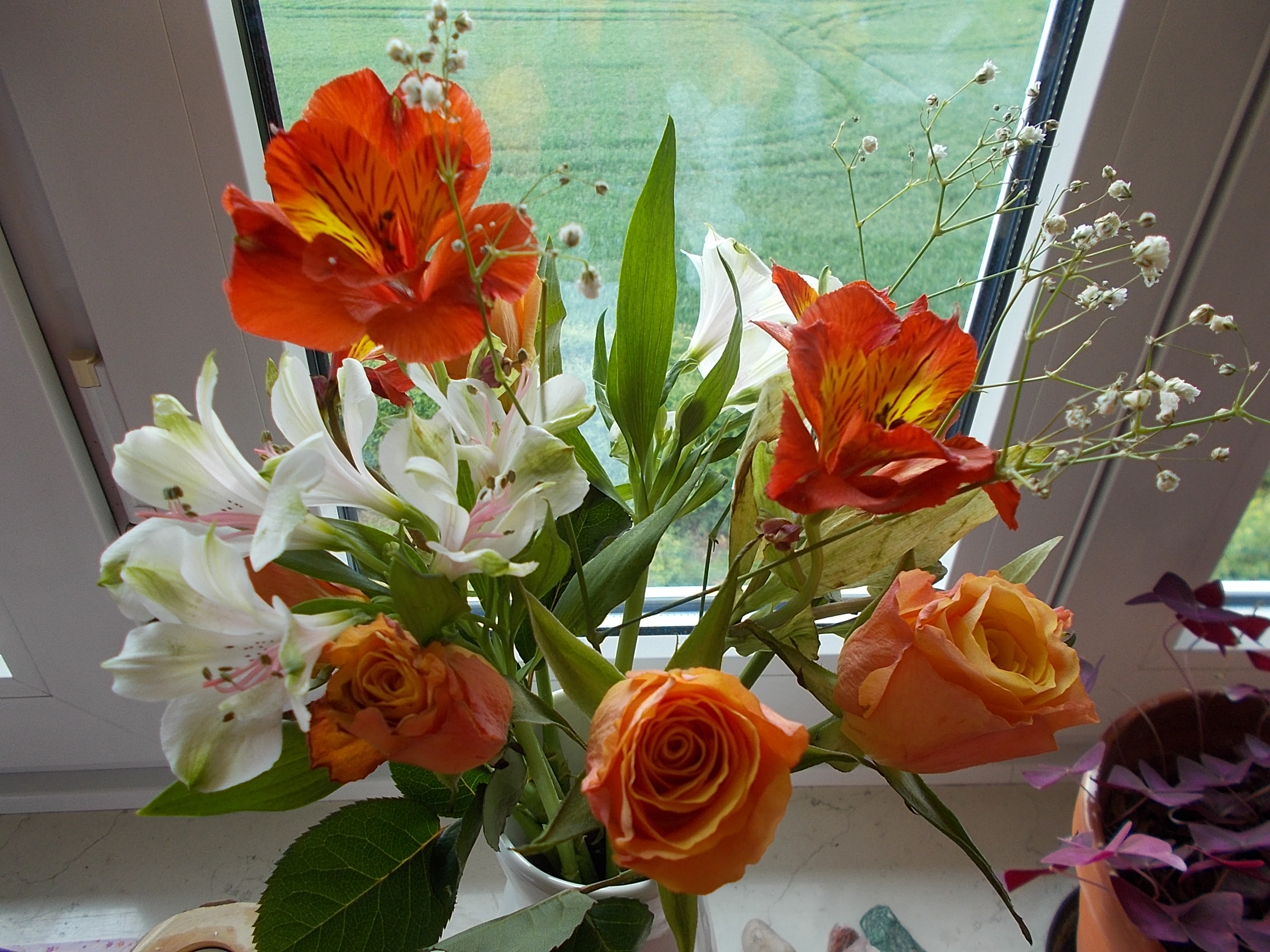 Der Chef dort sortierte gerade verschiedene Sträuße aus, weil viele Blumen darin welk geworden sind. Da hab ich ihn einfach gefragt, was die denn kosten, wenn ich mir zwei davon mitnehme.