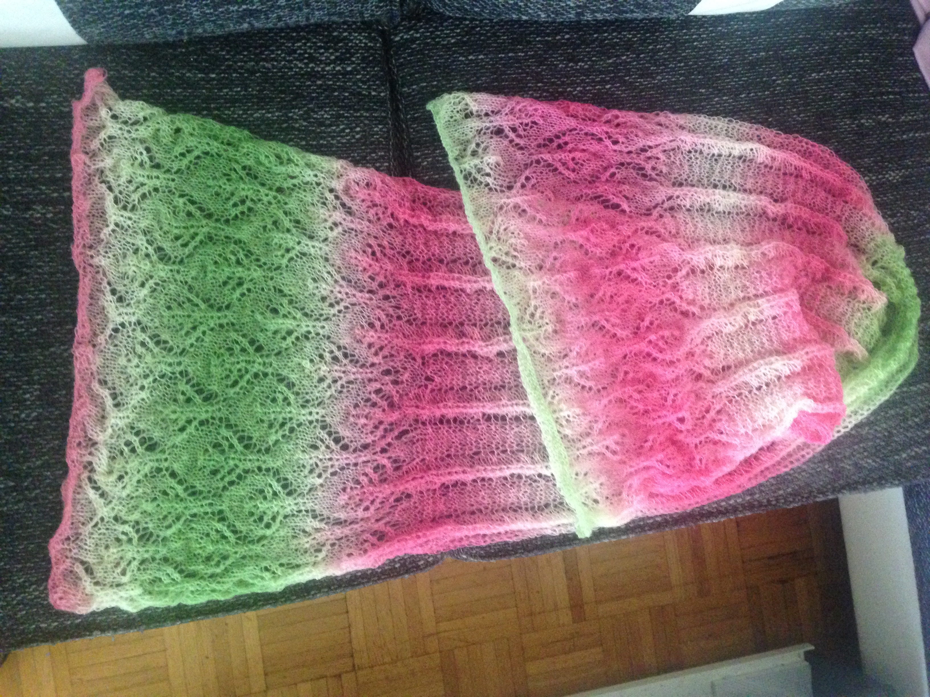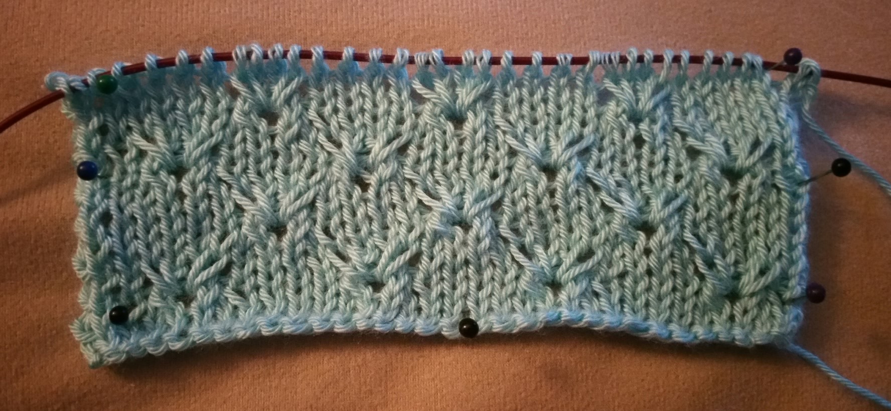 Ich habe ein sehr weiches Garn (Alpaka) für das Muster genommen, deshalb sind die Löcher nicht so ausgeprägt.