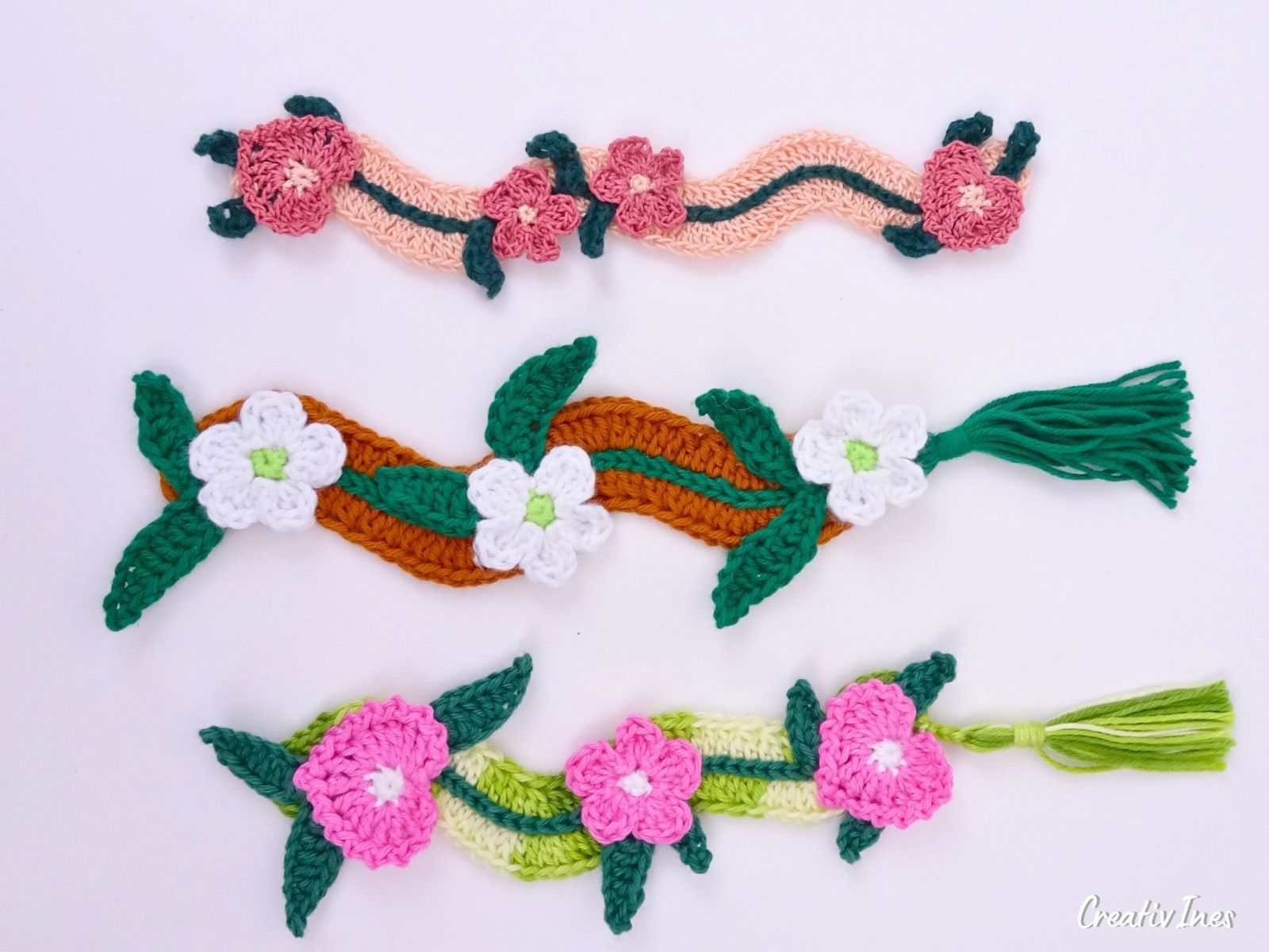• Herzen und Blumen: Diese Elemente werden separat gehäkelt und am Ende beliebig aufgenäht.