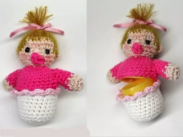 Verschenke dieses umhäkelte Überraschungsei als kleine Überraschung zur Geburt eines Kindes. Im Inneren kannst du einen Gutschein verstecken: zum Babysitten, für Windeln, Babykost oder Ähnliches.